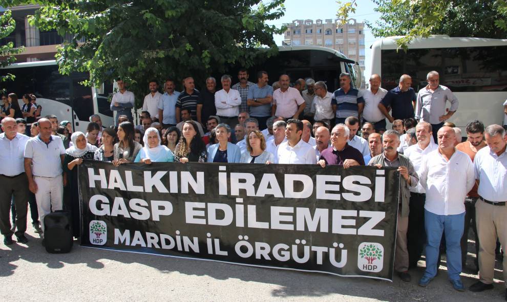Li Mêrdînê Nobeta Demokrasiyê ya li dijî tayînkirina qeyûman a ser şaredariyên Partiya Demokratîk a Gelan (HDP), li Mêrdînê di roja 32’emîn de berdewam kir. Polisan bi hinceta dirêjkirina qedexeya “çalakiyan” a Walîtiya Mêrdînê, avahiya HDP’ê ya bajar dorpêç kirin. Ji ber vê sedemê HDP’iyan çalakiya xwe li ber avahiya HDP’ê ya bajar li dar xistin. Parlamentera HDP’ê ya Colemêrgê û Hevseroka Kongreya Civaka Demokratîk (KCD) Leyla Guven tevlî çalakiyê bû û axaftinek kir.