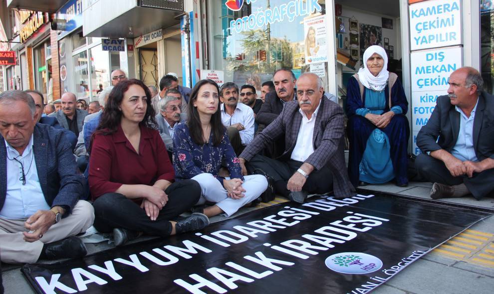 WAN – Li Wanê Nobeta Demokrasiyê ya li dijî tayînkirina qeyûmên dagirker di roja 32’yemîn de dewam kir. Çalakî li ber avahiya Rêxistina HDP’ê ya Navçeya Rêya Armûşê pêk hat û parlamenter û rêveberên HDP’ê û gelek welatî beşdar bûn. Parlamenterê HDP’ê Kemal Bulbul li Nobeta Demokrasiyê ya Wanê axivî û got: “Me AKP dabeşî sisêyan kir. Hûn di vî warî de dikarin ji me re bêjin ‘dabeşkar.’ Ez bang li malbatan jî dikim; sedemê zarokên we li çiyê ne AKP bi xwe ye.”