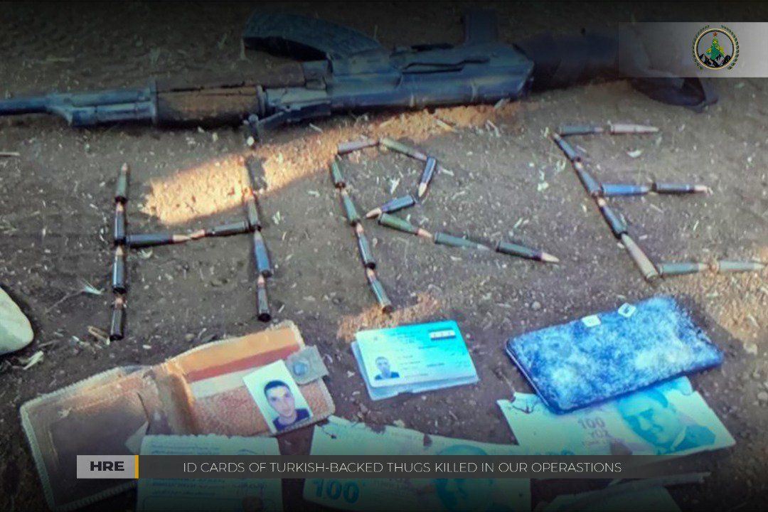 NAVENDA NÛÇEYAN – Hêzên Rizgariya Efrînê (HRE) der barê çalakiyên xwe yên duh de daxuyaniyeke nivîskî weşand. HRE’yê ragihand ku çeteyên artêşa Tirk a dagirker kirine armanc û di çalakiyan de 8 çete hatine kuştin. Her wiha HRE’yê diyar kir ku di çalakiya wan a li Şerayê de çekeke kalaşnîkof û gelek belge û nasnameyên çeteyan jî bi dest xistine.
