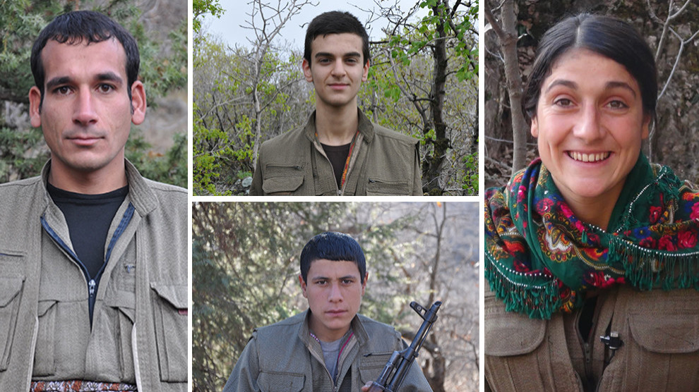 “Hevrêyên me Agîd, Amara, Kendal û Zagros ên ji parçeyên cuda yên Kurdistanê li dijî şer û înkara dewleta TC’ê ya dagirker a li ser Kurdistanê serî hildayîn li cih û demên cuda de tevlî Tevgera Azadiya Kurdistanê bûne. Hevrêyên me yên ji roja yekem a tevlî Tevgera Azadiyê bûne û vir ve di nava têkoşîneke bê eman de cihê xwe girtine, li dijî van êrîşên faşîst her demê di nava berxwedanekî mezin de bûne. Hevrêyên me yên xwe li gorî ruhê nû yê demê amade kiribûn, her yek di asta gerîlayeke pispor de bi pêş ve çûne. Li dijî tevgera dagirkeriyê ya mêtîngeriya faşîst a li herêma Haftenînê daye destpêkirin, berxwedanekî mezin nîşandaye, bedenên xwe kirine mertal, bi sirûda ‘Em rê nadin faşîzmê’ bi lehengî şer kirin. Hevrêyên me Agîd, Amara, Kendal û Zagoros ên bi hemû aliyên xwe ji bo me bûn mînak, carekî din rastiya milîtanî ya fedayî ya PKK’ê nîşan da.