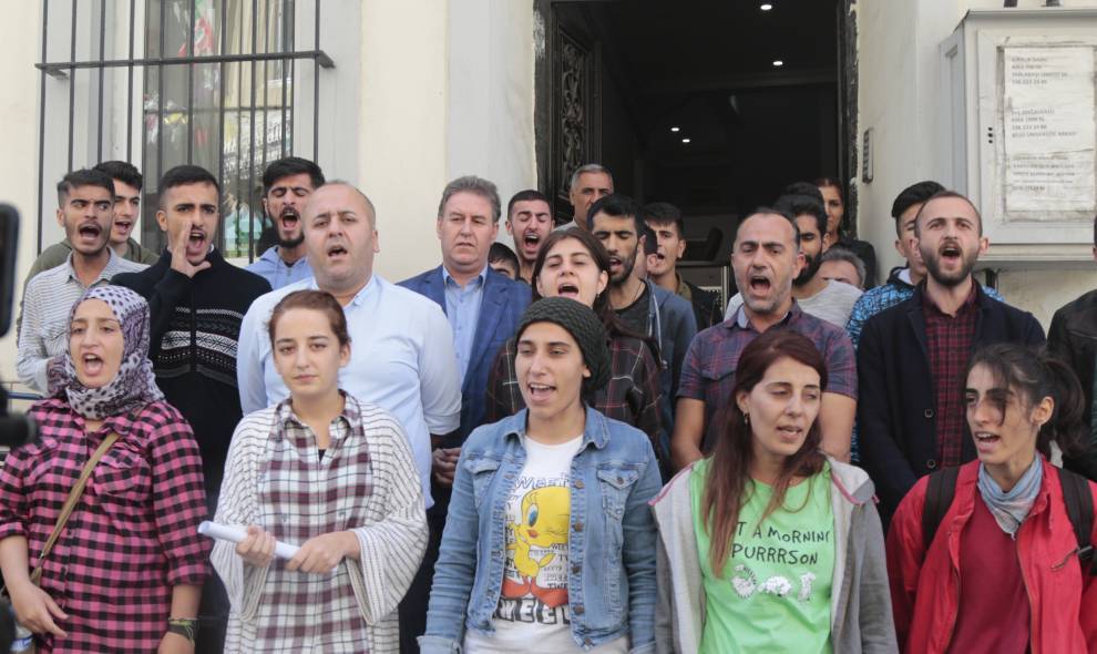 Daxuyanî bi dirûşmeyên “Em ê bi berxwedanê bi ser bikevin” û “Kole nebe, azad be” û “Zext me bêzar nakin” bi dawî bû.