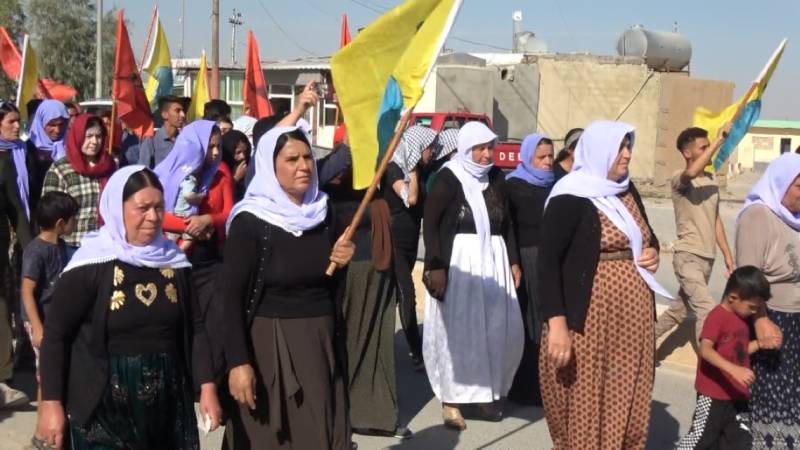 Îro li ser xaka Şengalê jî ev dagirkerî berdewam dike , wek ku li Başurê Kurdistanê qanala ma a Êzidiyatî tê qedexekirin û naxwazin pêşketîn, reng û dengê Êzidiyatî belav bibe ev hêz derbikeve holê. Ji ber vê yekê ev zanabun ev tê kirin . Zanebûn mektebî Laleş a Başur ku ji bo zaroka fêrî ol û baweriya bike hate girtin .Sedema van giştî dixwazin hebûna me tune bikin û hebuna xwe ava bikin .Ev jî bi destê PDK-Barzanî tê kirin , îxaneta ku 3’yê Tebaxê PDK’ê kir, îro jî vê îxanetê berdewam dike. Li Bakur qayum danîna ser şaredariyên Kurdan, dorpêça li ser Mexmûr, gefên li ser Rojava û dagirkirina Başur hemû bi hevre giredayîne . Yek ji yekê qut nîne. Xilaskirina van erîşan jî bi hilweşandina diwarê Îmraliye, azadiya Rêber Apo re wê pêk were. Ê ku pêşengtiya vê bike jî jin û ciwanin. Em jî wek tevgera jin û ciwanên Êzidî vê îxaneta heyî tu carî ji xwere qebul nakin , na qayume ser şarederiyên xwe, ne dorpêça ser Maxmûrê, erîşên ser Başur, nejî gefên ser Rojava û Şengalê qebul dikin û em ê bi rihê tolhilgirtinê dinyayê ji dijmin rê teng bikin.