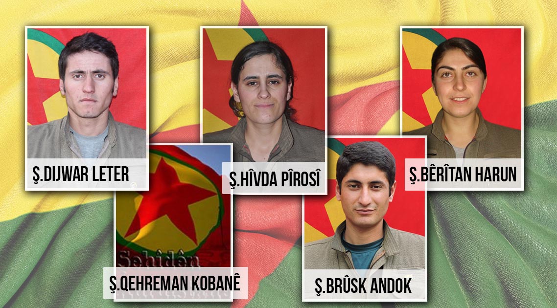 “2019 yılının Haziran ayında Medya Savunma Alanları’nın farklı bölgelerinde şehadete ulaşan Bêrîtan, Brûsk, Hîvda, Dijwar ve Qehreman yoldaşlarımızı saygı ve minnetle anıyoruz.