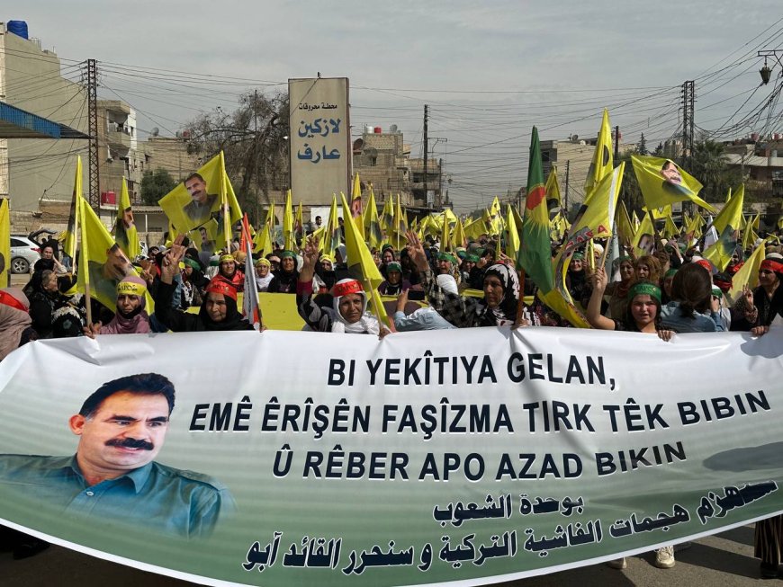 KOBANE – Dünyanın 74 merkezinde 10 Ekim’de başlatılan “Abdullah Öcalan’a özgürlük, Kürt sorununa siyasi çözüm” hamlesine destek veren Kobanê Genç Kadınlar Birliği üyeleri, ajansımıza konuştu. Önder APO fikirlerinin peşinden gideceğini belirten Kobanê Genç Kadınlar Birliği üyesi Nadye Axasi, “İşgalci Türk devletinin saldırıları, Önder APO fiziki özgürlüğü için yaptığımız eylemleri hiçbir zaman engelleyemeyecek. Mücadeleyi güçlendireceğiz. Önder APO ile Kuzey ve Doğu Suriye halkına yönelik saldırıları ve kirli planlara karşı mücadelemiz daha güçlü olacak” dedi.