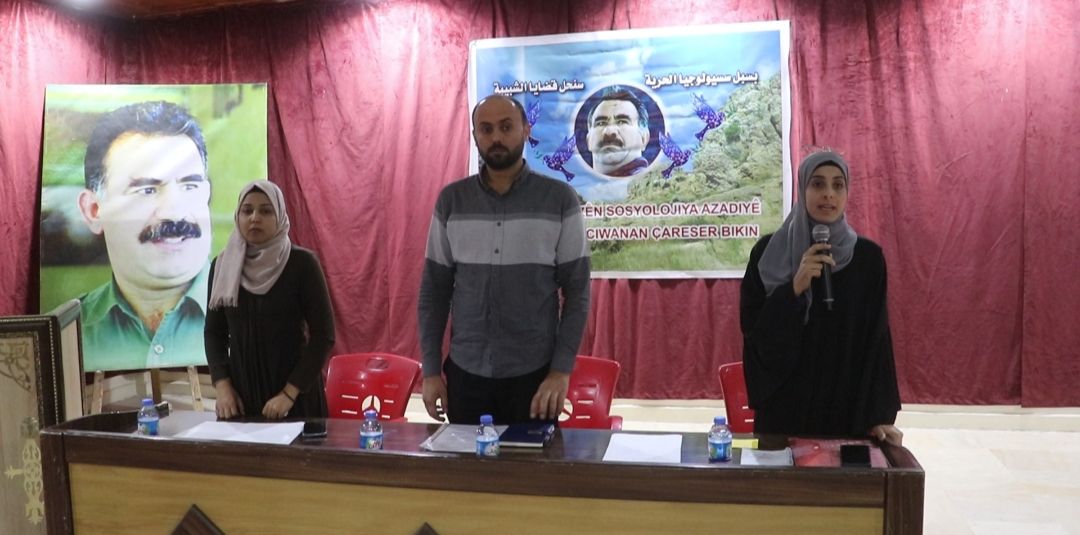 TEBQA – Suriye Devrimci Gençlik Hareketi, “Özgürlük sosyoloji yöntemleriyle gençlerin sorunlarını çözeceğiz” başlığıyla Tebqa’da bir forum düzenledi. Kentteki onlarca genç, Tebqa Demokratik Sivil Yönetimi temsilcileri, Suriye’nin Geleceği Partisi ve Zenûbiya Kadın Topluluğu üyeleri katıldı. Forum, Önder Abdullah Öcalan’a Özgürlük Suriye İnisiyatifi üyesi Şeza El Hisên’in konuşmasıyla başladı. Dünya genelinde başlayan “Abdullah Öcalan’a özgürlük, Kürt sorununa siyasi çözüm” hamlesine dikkat çeken Şeza, gençlerin hamleye katılmasının büyük bir önem taşıdığını ve gençlerin Önder Abdullah Öcalan’ın fikirlerinden ne kadar etkilendiğine işaret ettiğini belirtti.