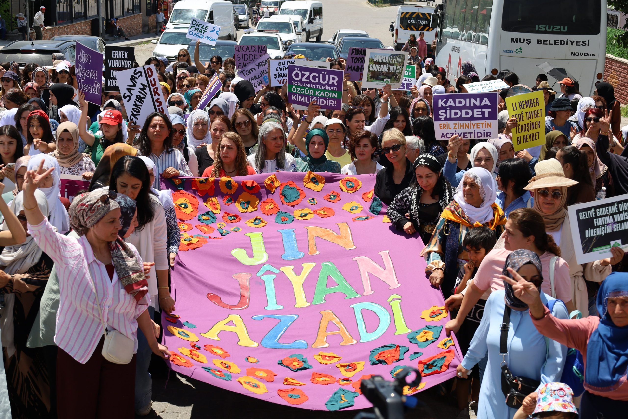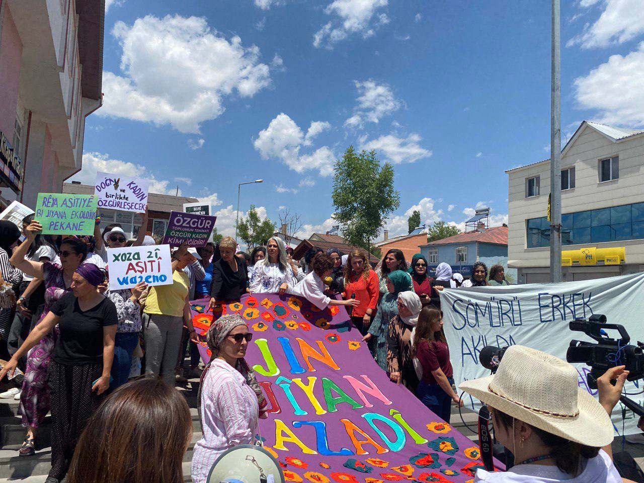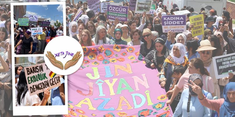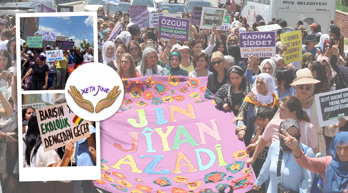 Xeta Jinê üyeleri Festivale Renk Kattı. Pankartları açan genç kadınlar sık sık “Bijî Serok Apo”, “Jin, jiyan, azadî” sloganlarını attı.