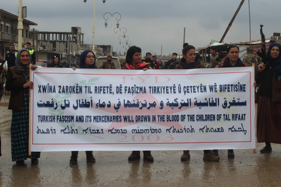 HPC, Girkê Legê ilçesinde organize ettiği yürüyüşte, işgalci Türk devletinin Til Rifat’taki çocuk katliamını kınadı ve “Faşist ve sömürücü Türk devletinin Kuzey ve Doğu Suriye’ye saldırılarına hayır” sloganları haykırdı.