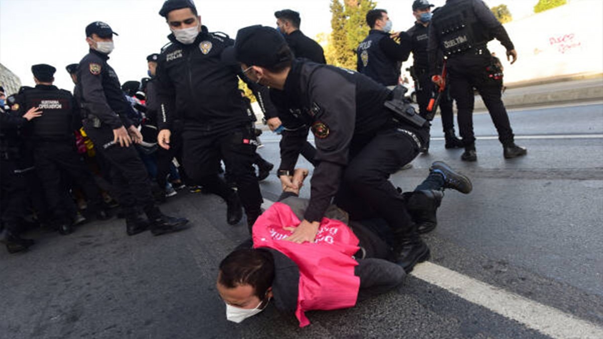 Osmanbey’de ise “Kampüsten sokağa biz kazanacağız” pankartı ile Taksim’e doğru yürüyüş yapan üniversite öğrencilerine de saldıran polis, bütün öğrencileri gözaltına aldı.
