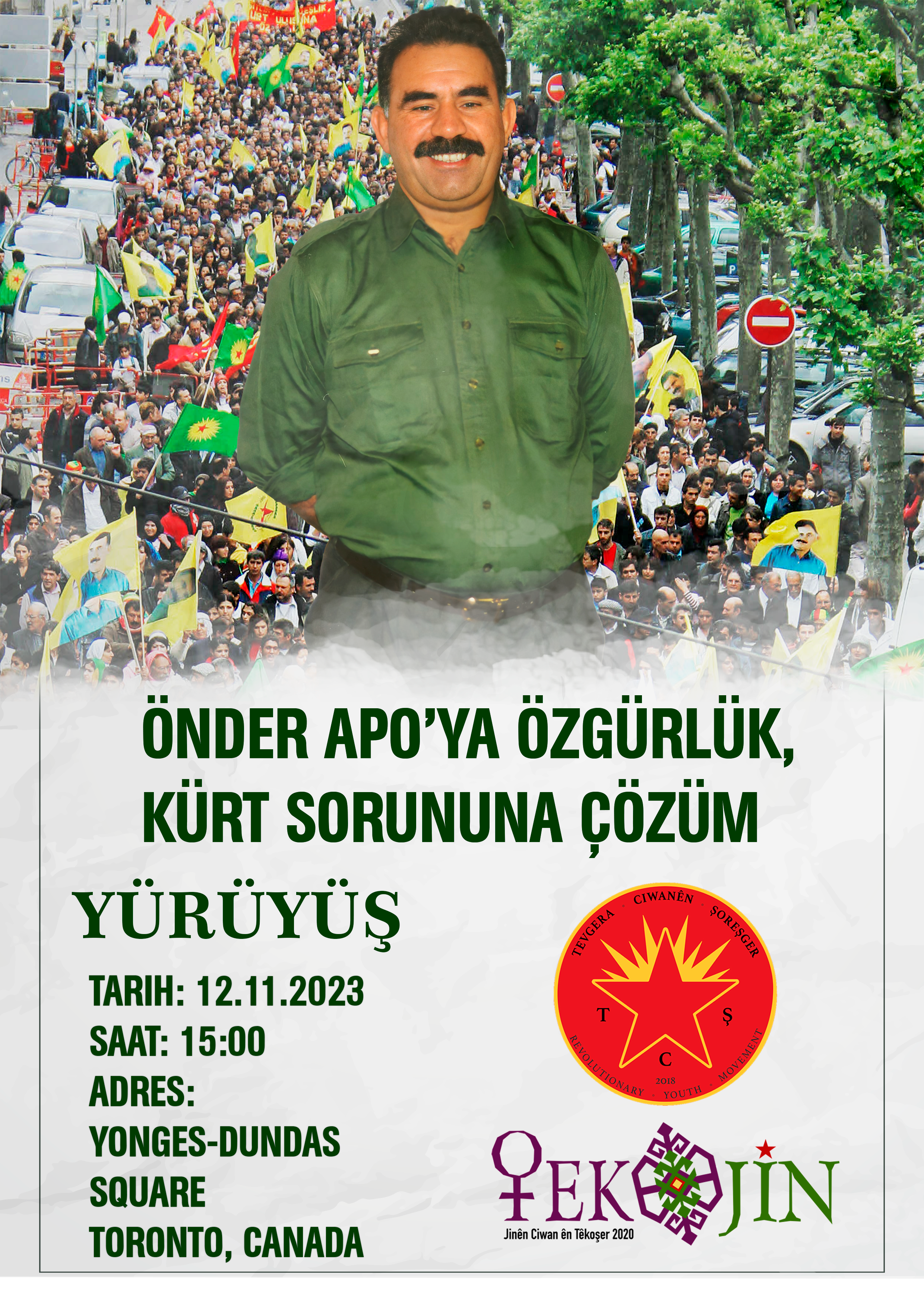 Kanada’nın Toronto kenti ve Avrupa’nın birçok merkezinde Avrupa Gençlik Hareketleri Tevgera Ciwanên Şoreşger (TCŞ) ve Jinên Ciwan ên Têkoşer (TekoJIN) üyesi gençler Önder APO’nun fiziki özgürlüğü için başlatılan ‘’Önder APO’ya Özgürlük Kürt Sorununa Çözüm’’ hamlesi kapsamında eylemselliğe geçiyor.