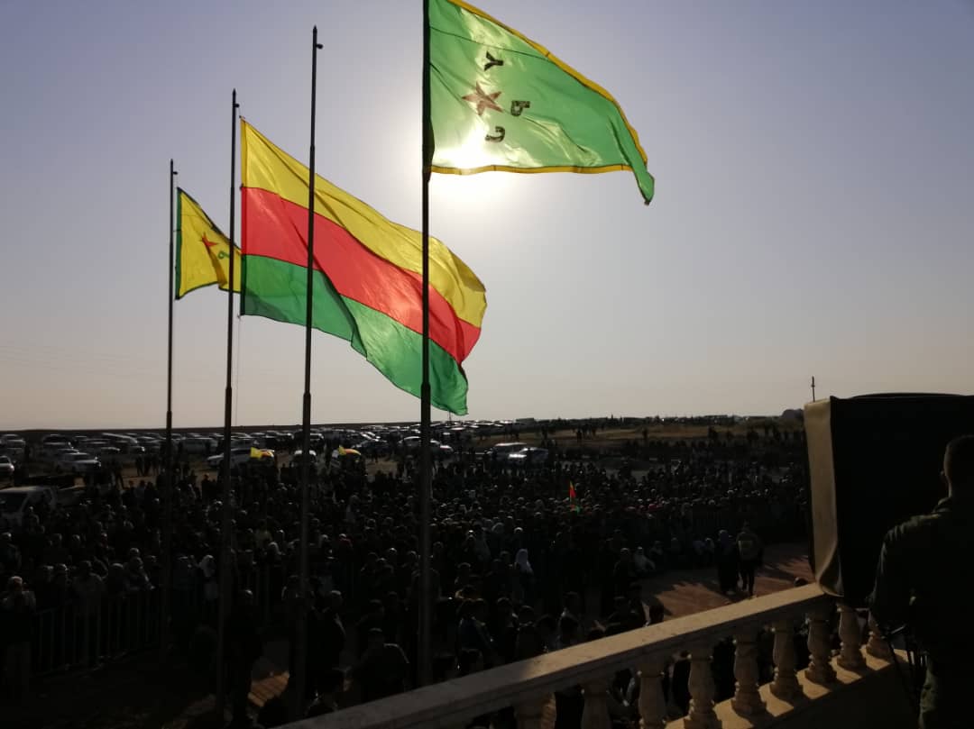 Şehitlikte binlerce yurttaşın katıldığı tören, saygı duruşu ile başladı. Ardından konuşan TEV-DEM Yürütme Kurulu Üyesi Aldar Xelîl, Türk devletinin işgal saldırılarında bölgedeki tüm halk ve inançları hedef aldığını belirterek, “İşgal saldırıları ile demokratik proje, halkların ortak yaşam iradesi ve halkların birliği hedef alınıyor” dedi. İşgalcilere karşı sergilenen direnişe işaret eden Xelîl, halkların birlik içerisindeki direnişinin tüm dünyaya bir mesaj olduğunu vurguladı.