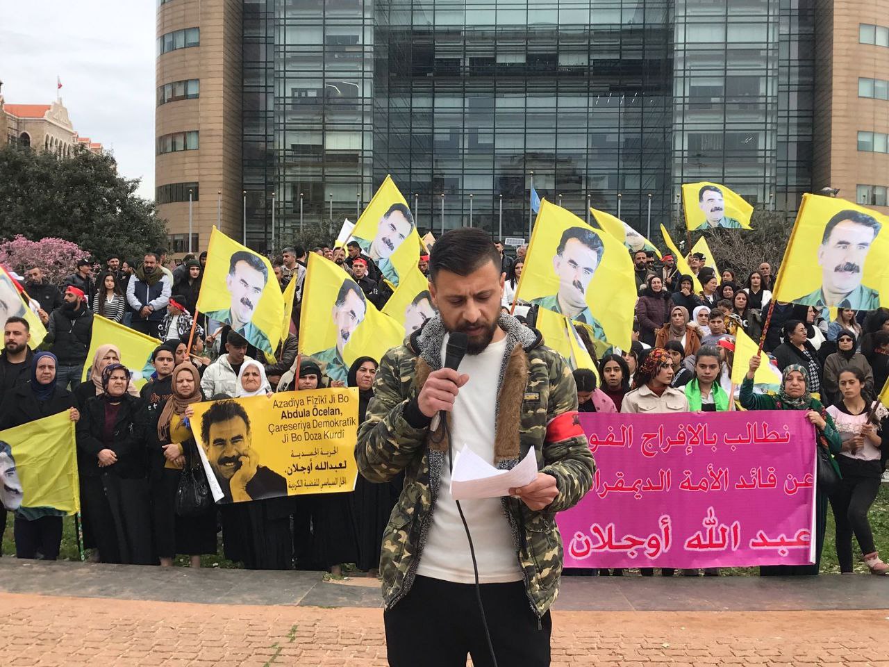 LÜBNAN – Kadın örgütleri, Kürt hukukçular, Kürt gençleri ve Lübnan’daki Kürt davasının destekçileri, Beyrut’taki BM Genel Merkezi önünde bir araya gelerek, Önder APO’ya yönelik Uluslararası Komplo’yu kınamak ve onun fiziki özgürlüğünü talep etmek amacıyla protesto eylemi düzenledi.