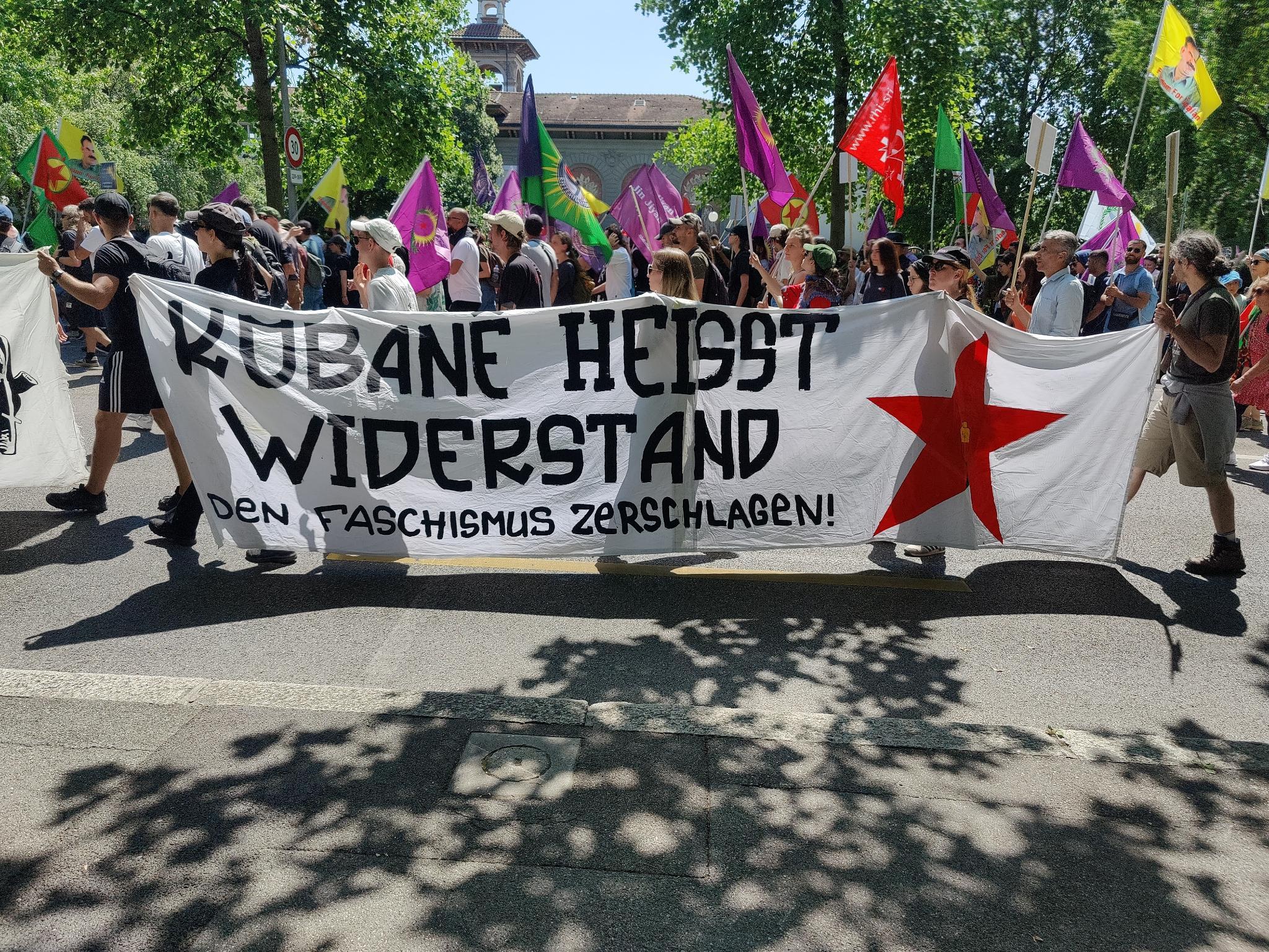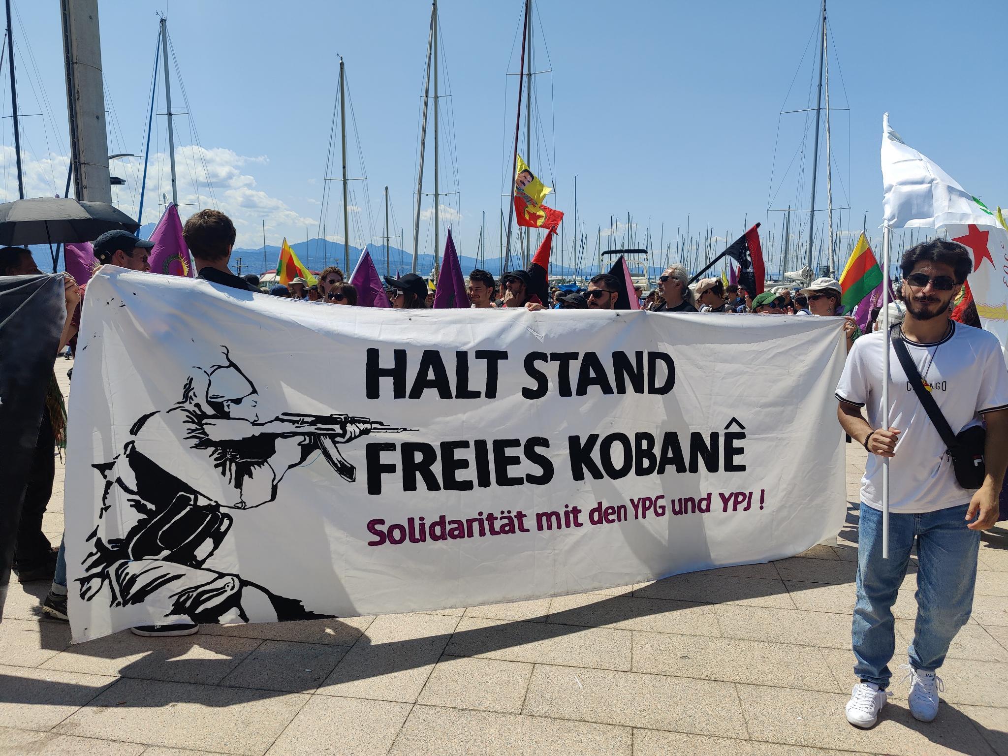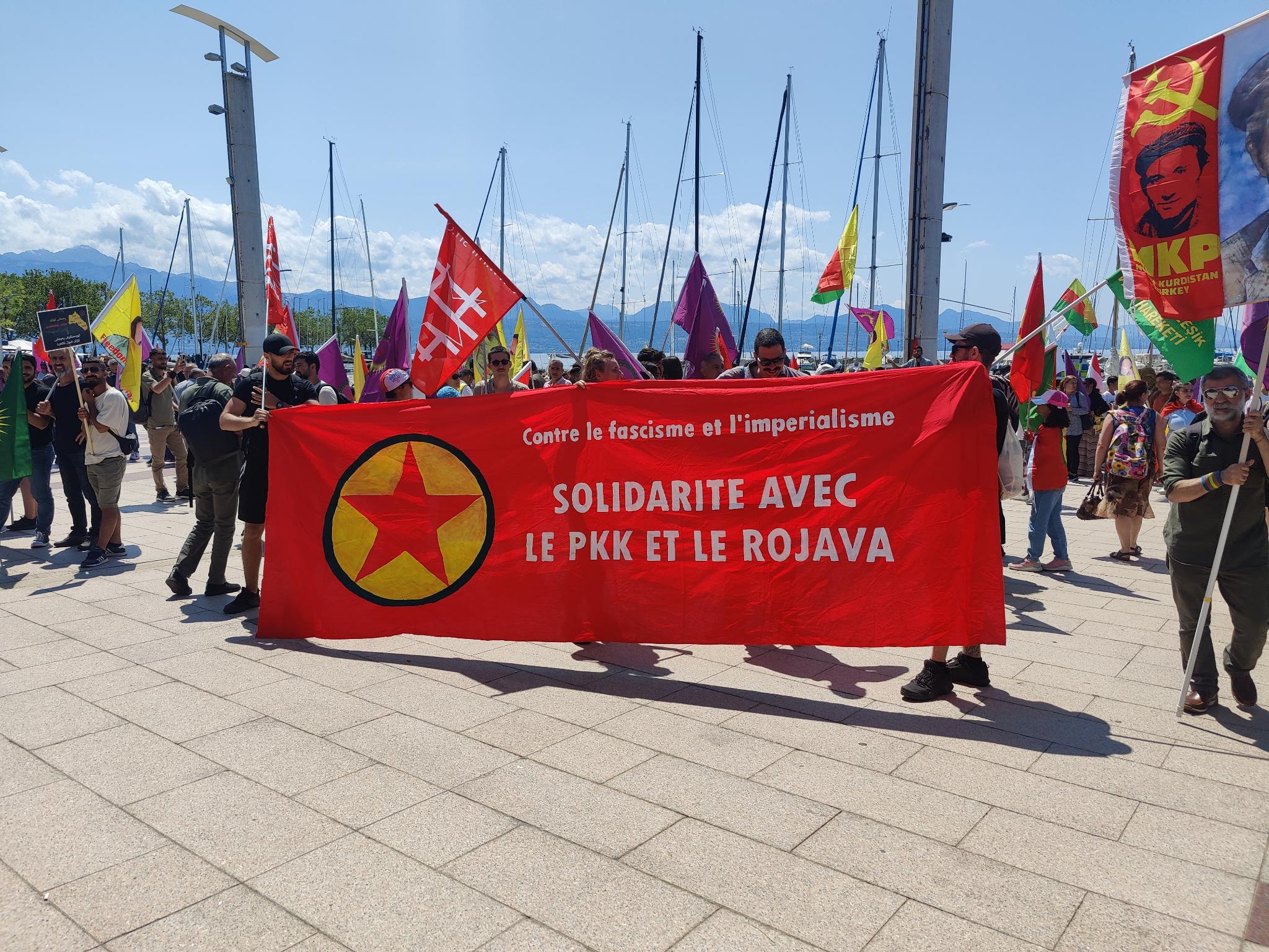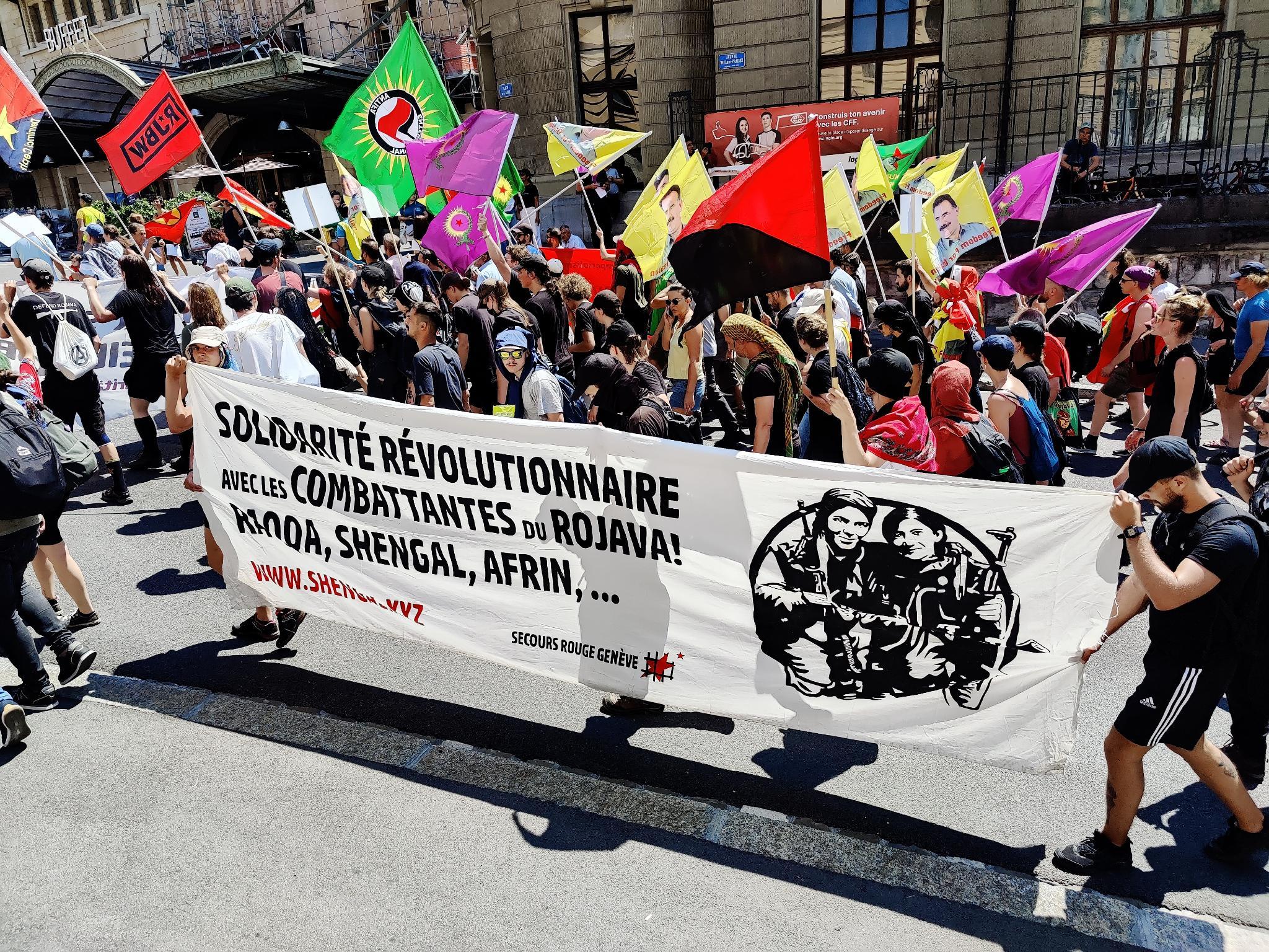 Enternasyonalist gençliğin organizesiyle yüze yakın farklı uluslardan gençler Lozan Anlaşması’nın 100. yıl dönümü vesilesiyle Lozan’da yapılan büyük yürüyüşü katıldılar. “Defend Kurdistan – Kürdistanı Savun!” panrkartı arkasında yürüyen gençler, binlerce Kürdistan’lı ile birlikte Place de La Navigation meydanında yürüyüşe başlayarak anlaşmanın imzalandığı yere kadar yürüdü. Yüz yıl sonra dostları ve temsilcileriyle Lozan’da olan Kürtler bir kez daha Kürdistan halkları için Lozan Anlaşmasının bir geçerliliği olmadığını dünyaya haykırdılar.