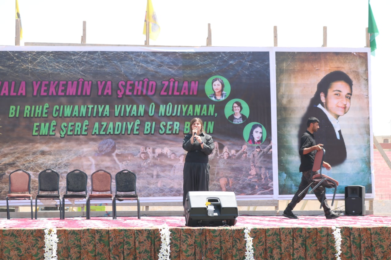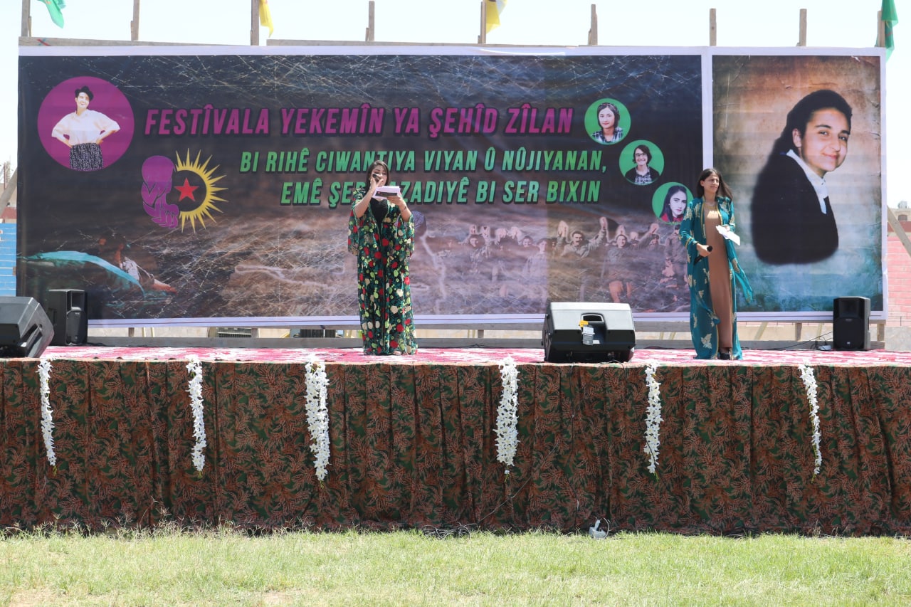 REQA – Kuzey-Doğu Suriye Yekîtiya Jinên Ciwan taraından Reqa’da 30 Haziran’da Şehit Zilan’ın gerçekleştirdiği fedai eylem anısına festival düzenleniyor. Festivale yüzlerce genç kadın katılırken, bölge halkının da yoğun katılımı gözlemlendi. Şehitlerin anısına bir dakikalık saygı duruşunun ardından başlayan festival de açılış konuşmasını Yekîtiya Jinên Ciwan adına konuşan Jînda Yûsif gerçekleştirdi.