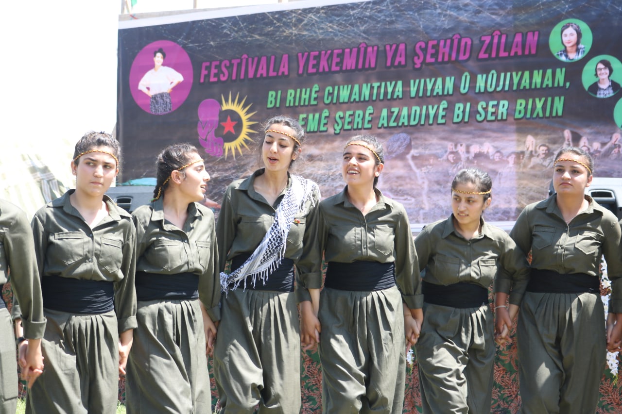 Gerilla kıyafetler (şal û şepik) ve ulusal kıyafetlerle festivale katılan genç kadınlar ve bölge halkının büyük bir coşkusu gözlenirken, müzik grupları ve genç kadınların gösterileri ile festival devam ediyor.