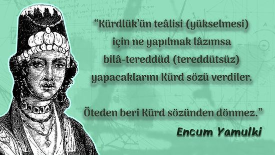 Encum Yamulki açıktan bir Kürdistan davasından, bu davaya verilecek destekten söz etmektedir. Ve bu amaçla hayır işleri işleyeceklerini, dostları olan kadınlarla bir araya geleceklerini belirtmekte ve bütün kadınları bu davayı sahiplenmeye çağırmaktadır. Kürt ulusunun bireyleri olarak bu davayı benimsemek ve bunun için çalışmak Kürt Kadınları Teali Cemiyeti için de öncül amaç olarak durmaktadır.