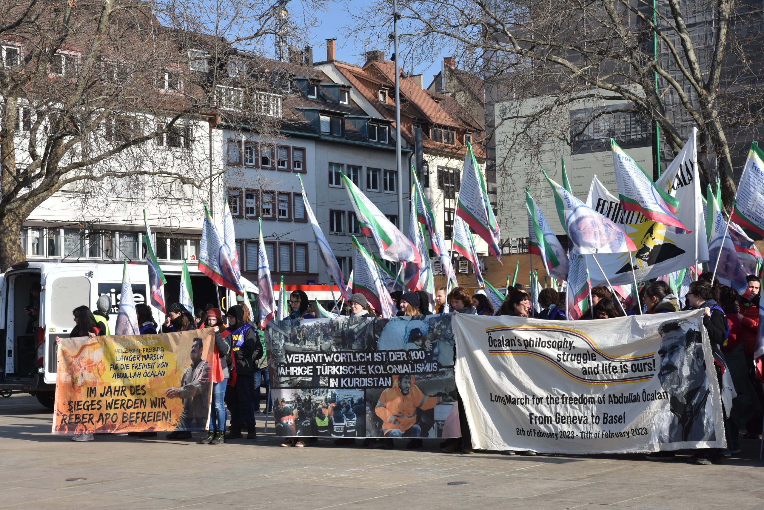 FREIBURG – 6 Şubat’ta “2023 Zafer yılında Önder APO’nun özgürlüğünü sağlayacağız” şiarı ile Uzun Yürüyüşe başlayan gençler Almanya’nın Freiburg kentinde İsviçre’den gelen Enternasyonalist Uzun Yürüyüş kolu ile birlikte bir basın açıklamasıyla yürüyüşlerini başarıyla sonlandırdı.