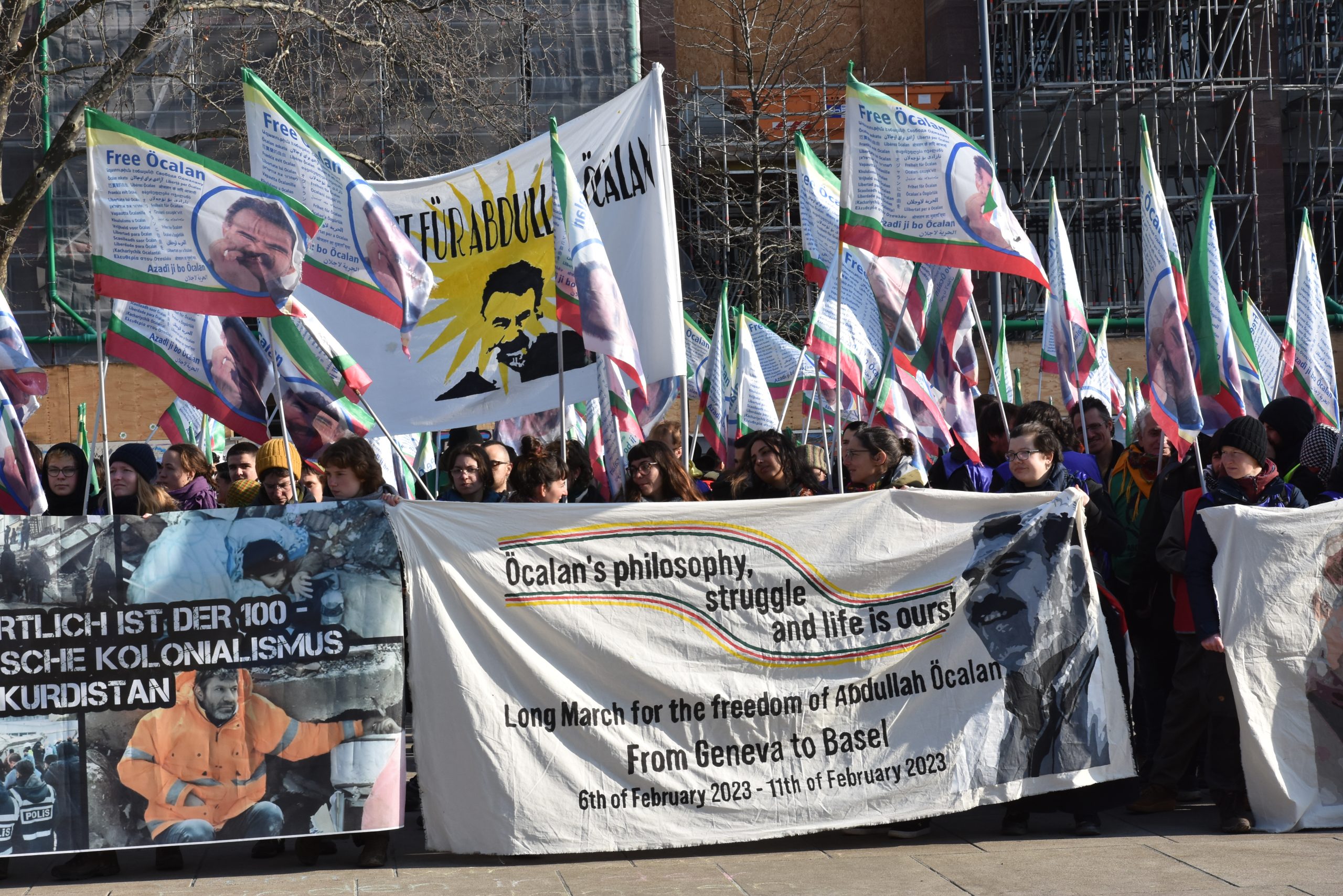 Öte yandan İsviçre’den 6 Şubat günü Önder APO‘nun fiziki özgürlüğünü sağlama amaçlı yola çıkan Enternasyonalist gençlerin yürüyüşü dün İsviçrenin Basel kentinde sonlandırılmıştı. Enternasyonalist gençler bu sabah saat 09:00’da Freiburg’da Alten Sinagog platz’da Kürt gençlerinin yürüyüşü ile birleşerek ortak yürüyüşe geçtiler.