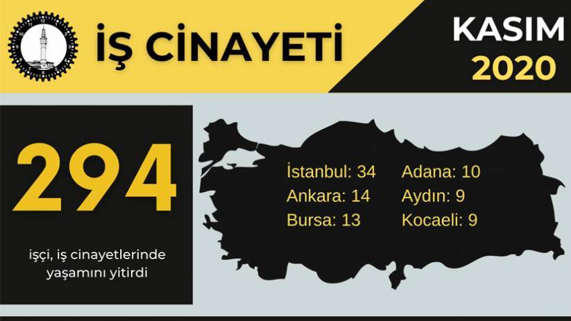 İSİG Meclisi'nin yayınladığı Kasım ayı İş Cinayetleri Raporu'na göre, 21’i kadın 294 işçi yaşamını yitirdi, yılın ilk on bir ayında ise en az 2 bin 32 işçinin hayatını kaybettiği ifade edildi.