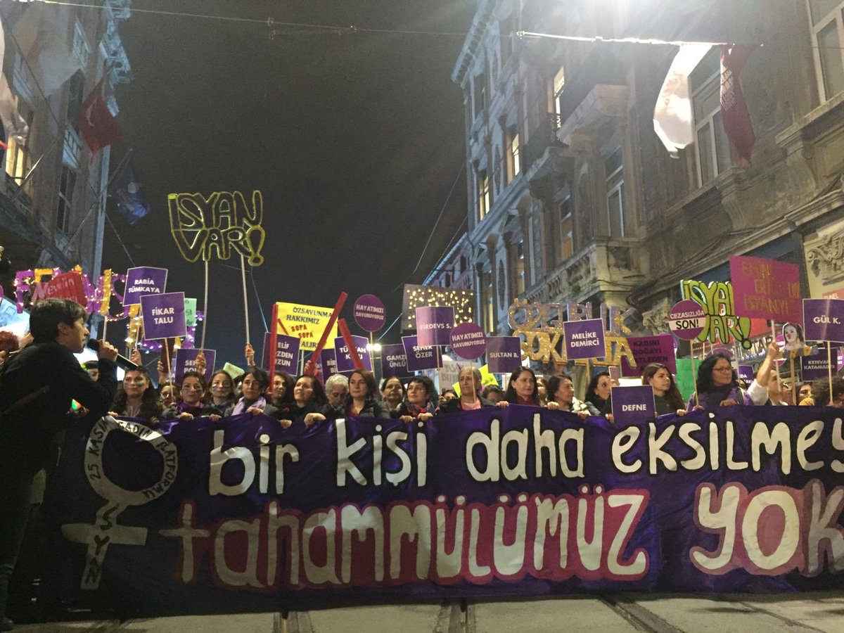 “Kadınlar, her gün, özellikle krizin getirdiği artan işsizlik ve güvencesizlikle, aile içindeki şiddetten uzaklaşacak geçim kaynağı ve gelecek güvencesi olmadığı için erkek şiddetine mahkûm ediliyor. Kadınlar, her gün, savaşın ve sınırların gölgesinde, Türkçe konuşmadıkları için veya göçmen oldukları için, doğdukları yerden ötürü şiddete uğruyor; şiddete maruz bırakıldıklarında yasal haklarını arayamadıkları için öldürülüyor.