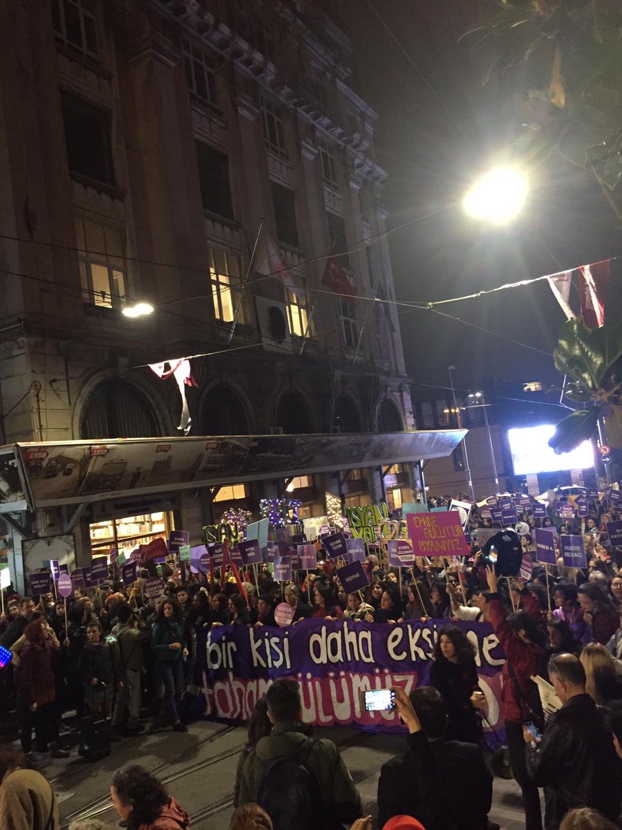 Ve umudumuz birbirimizde. Umudumuz birlikteliğimizden aldığımız güçte, kadın dayanışmasında. Umudumuz her gün şiddetten uzak bir hayat için her bir nefesimizle verdiğimiz ortak mücadelede. Bundan daha ferah, daha özgür, daha eşit, kimsenin kimliğinden ötürü şiddete uğramayacağı bambaşka hayatlar hayal ederek el ele veriyoruz. Bunu biz yapmazsak kimse bizim için yapmayacak, biliyoruz. Ve hep birlikte sesleniyoruz.”