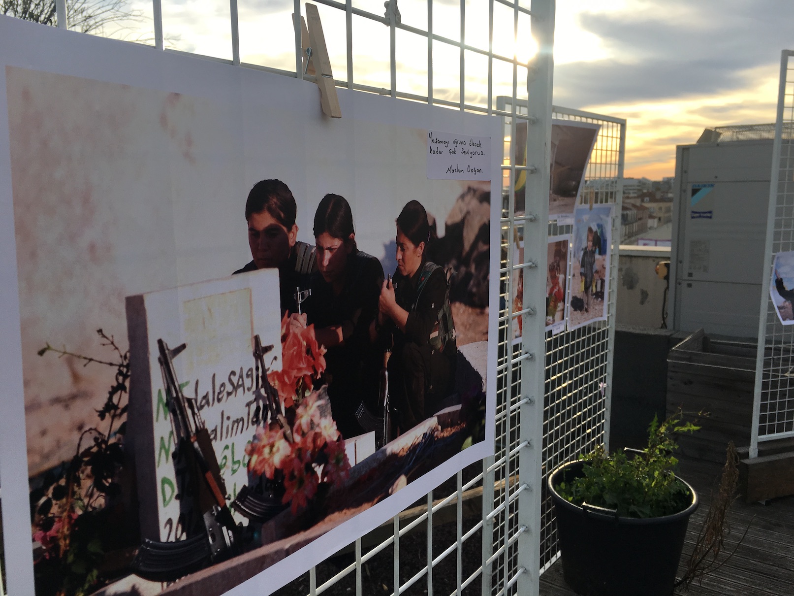 Etkinlikte, Fransa Kürt Toplum Meclisi (CDK-F) Eşsözcülerinden Fevziye Erdemirci de bir konuşma yaptı. Öncelikle Rojava şehitlerini selamlayan Erdemirci ; “17 gündür direniş sürüyor. Ve biz diyoruz ki ; Kürtlerin bu direnişi başaracaktır. Biz inanıyoruz ki ; Kürtler bir statü sahibi olacaktır. Herkesi bu inançla selamlıyorum. Yaşasın Rojava Direnişi ! “.