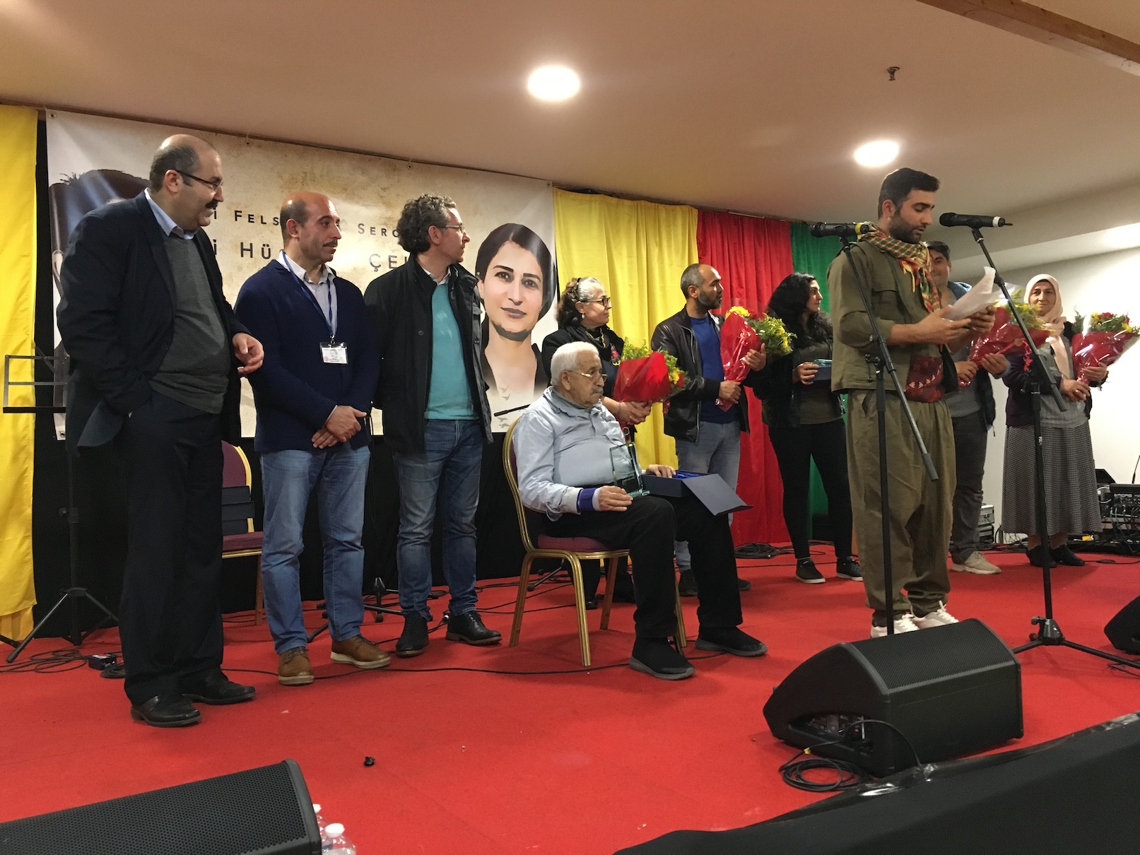 Diyar Mehrovi’nin sunduğu müzik dinletisinden sonra ödül töreni yapıldı. Sırasıyla Yelda Abbasi ve Hivron sahne alarak, gençler sloganlar eşliğinde coşkulu halaylar çekti.