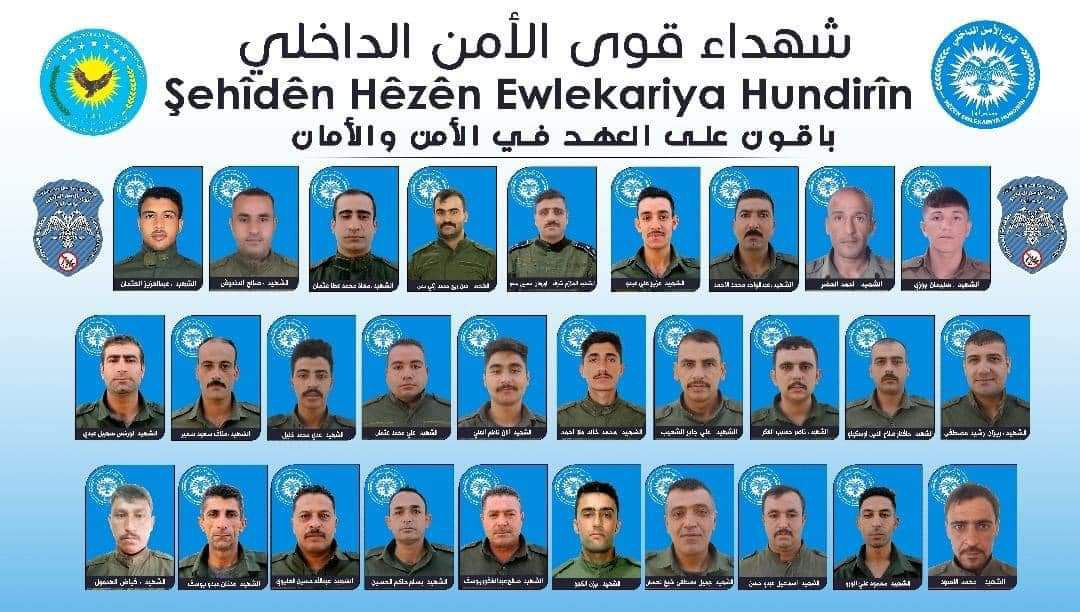 HABER MERKEZİ- Kuzey ve Doğu Suriye Şehit Aileleri Meclisi, işgalci Türk devletinin 9 Ekim gecesi Uyuşturucuyla Mücadele Güçleri’ne ait akademiye yaptığı hava saldırısında şehit düşen 29 üyesinin kimlik bilgilerini açıkladı.