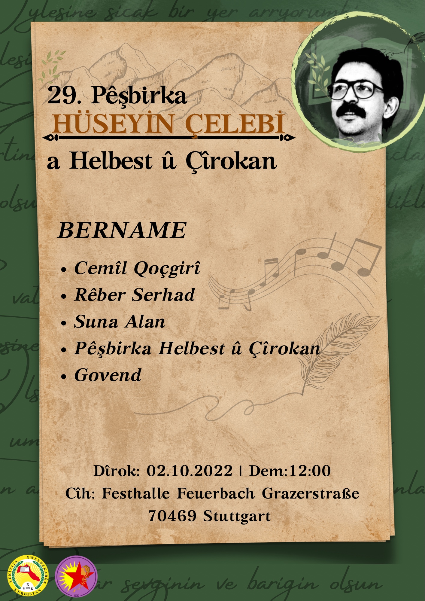 HABER MERKEZİ – Her yıl düzenlenen Şehid Hüseyin Çelebi Şiir ve Öykü Etkinliği, Kürdistanlı Öğrenciler Birliği (YXK) ve Kürdistanlı Kadın Öğrenciler Birliği (JXK) tarafından bu sene 2 Ekim’de Stuttgart’ta gerçekleşiyor.