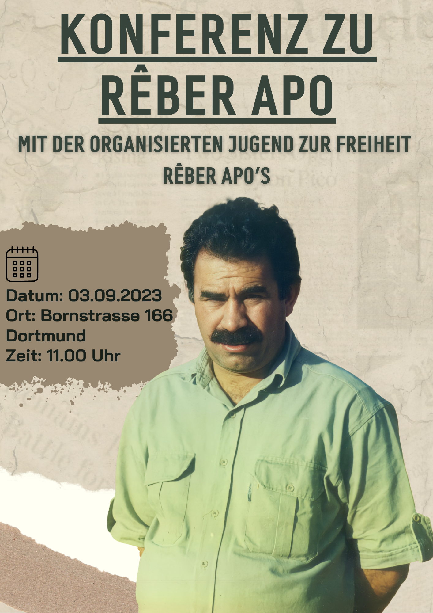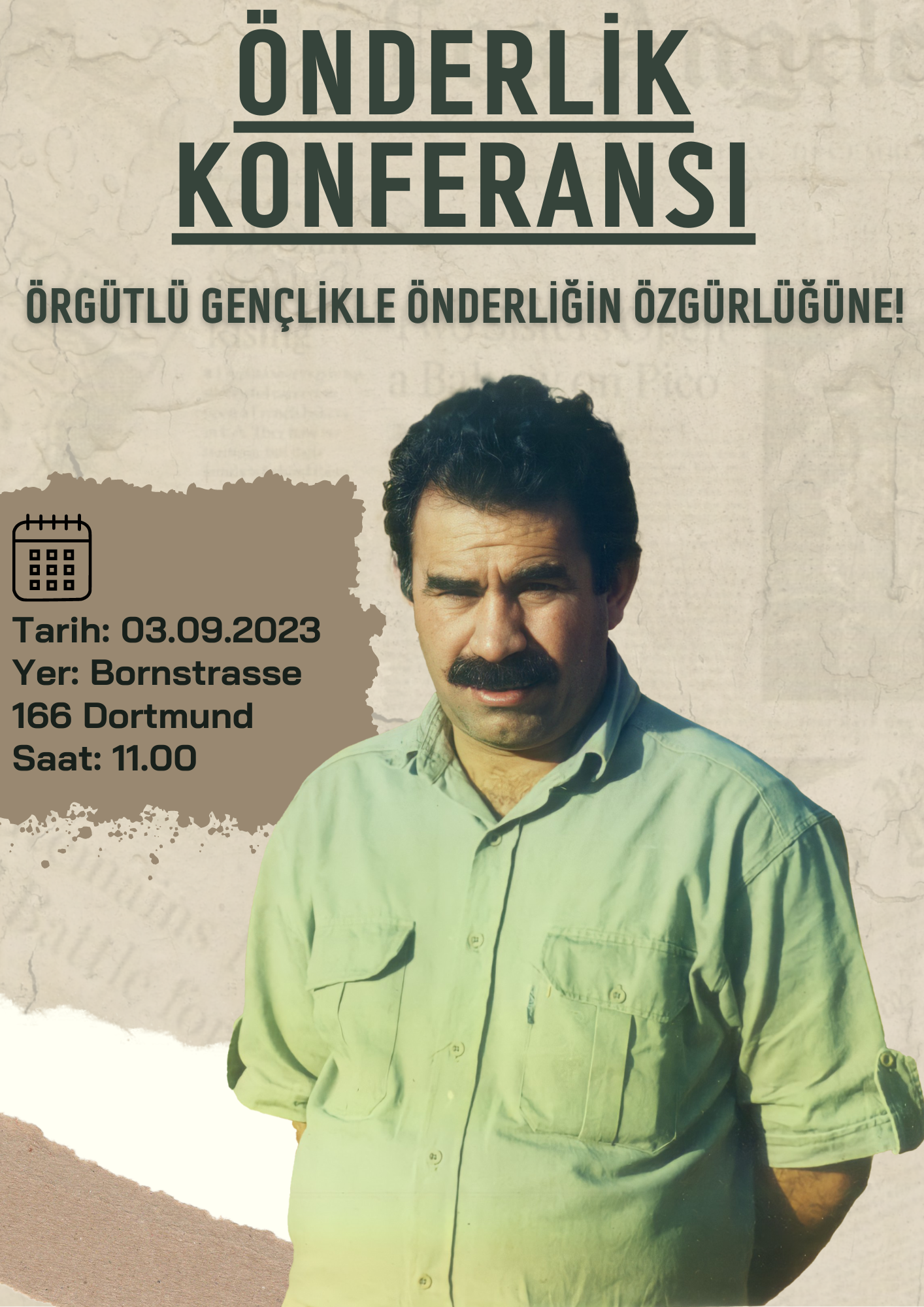 DORTMUND – Önder APO için Almanya’nın Dortmund kentine Kurdistanlı ve enternasyonalist gençler ’’Örgütlü Gençlikle Önderliğin Özgürlüğüne’’ şiarıyla 3 Eylül’de 1 günlük konferans gerçekleştirecek.