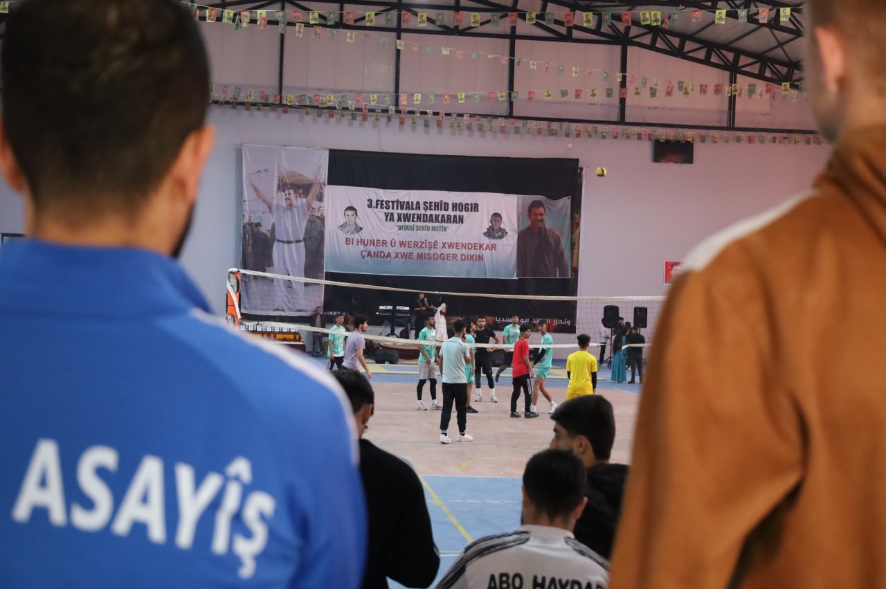 QAMIŞLO –  Bugün Yekîtiya Xwendekarên Welatparêz ên Sûriyê , “Öğrencileri sanat ve spor yoluyla kültürleriyle gururlandırın” sloganıyla bugün Qamışlo’da 3. Şehit Hogir Gençlik Festivali’ni düzenliyor. Festival Şehit Metin’e ithaf edildi. Hisên Kiço Spor Kompleksi’nde düzenlenen festival Cizîre bölgesindeki okul, üniversite ve kurumlardan yüzlerce öğrencinin katılımıyla gerçekleşti.