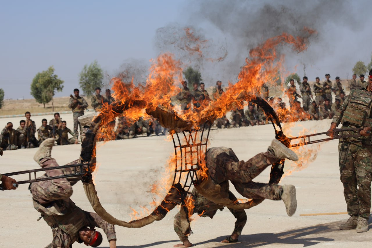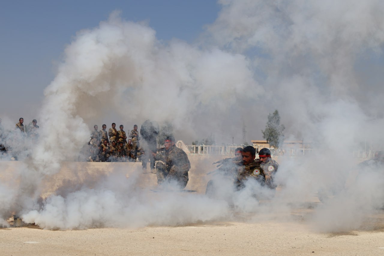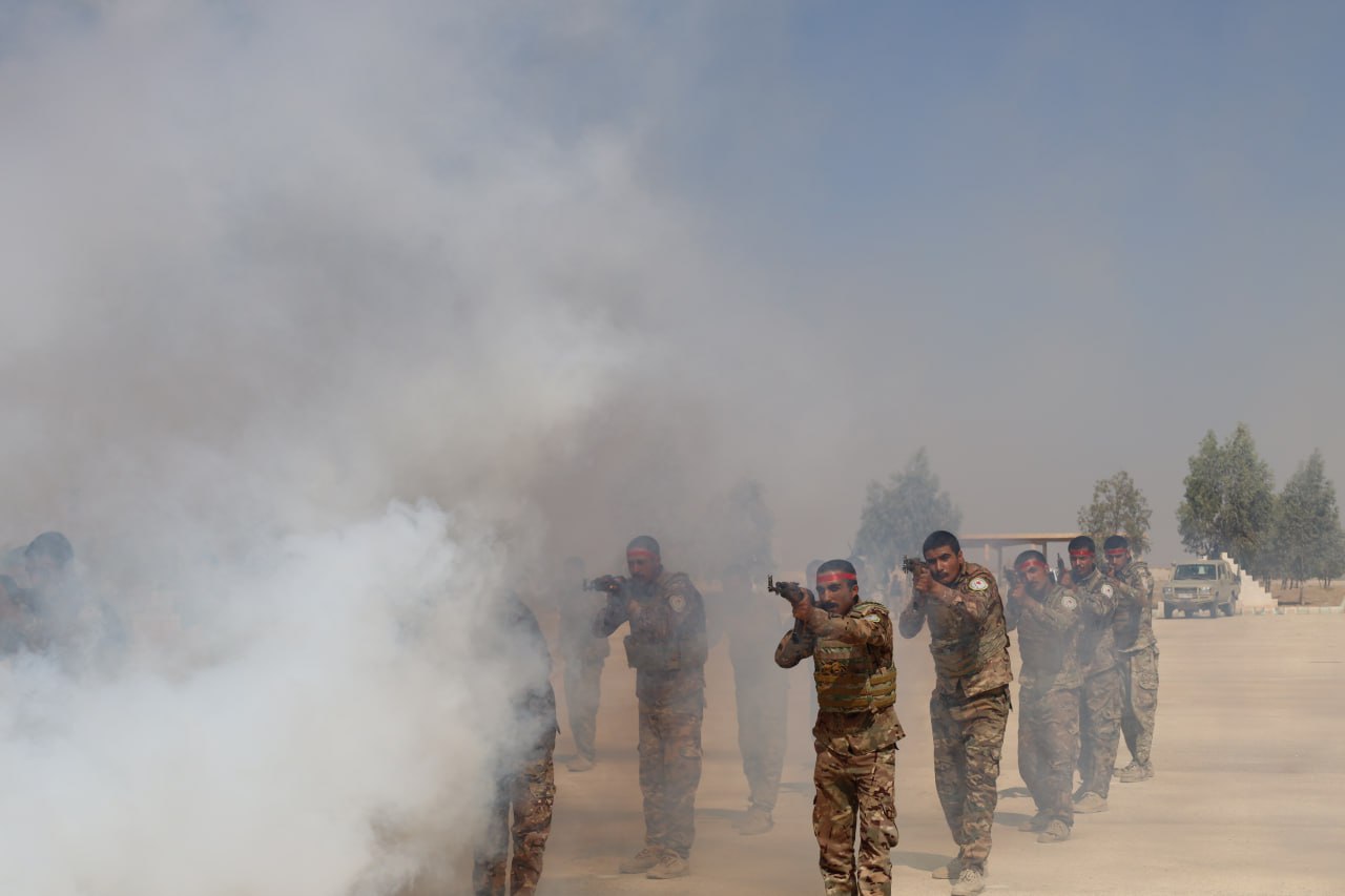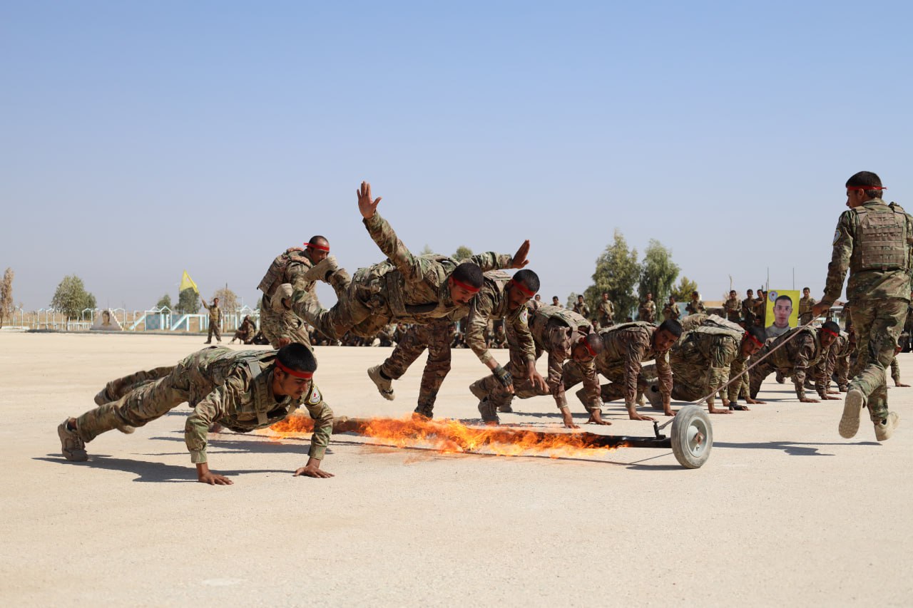 HESEKÊ – Şehit Ahmed Abdil Alhisen adına başlatılan Öz Savunma Görevi Akademisi bugün sona erdi. Eğitim devresine katılan 300 Öz Savunma Görevi üyesi eğitimlerini başarıyla tamamladı. Halkın ve birçok kurumun katılımıyla devrenin başarıyla sonlandırılması gerçekleştirilen bir moralle kutlandı. Moral askeri geçit töreniyle başladı. Ve yapılan bir çok askeri gösterilerle devam etti.