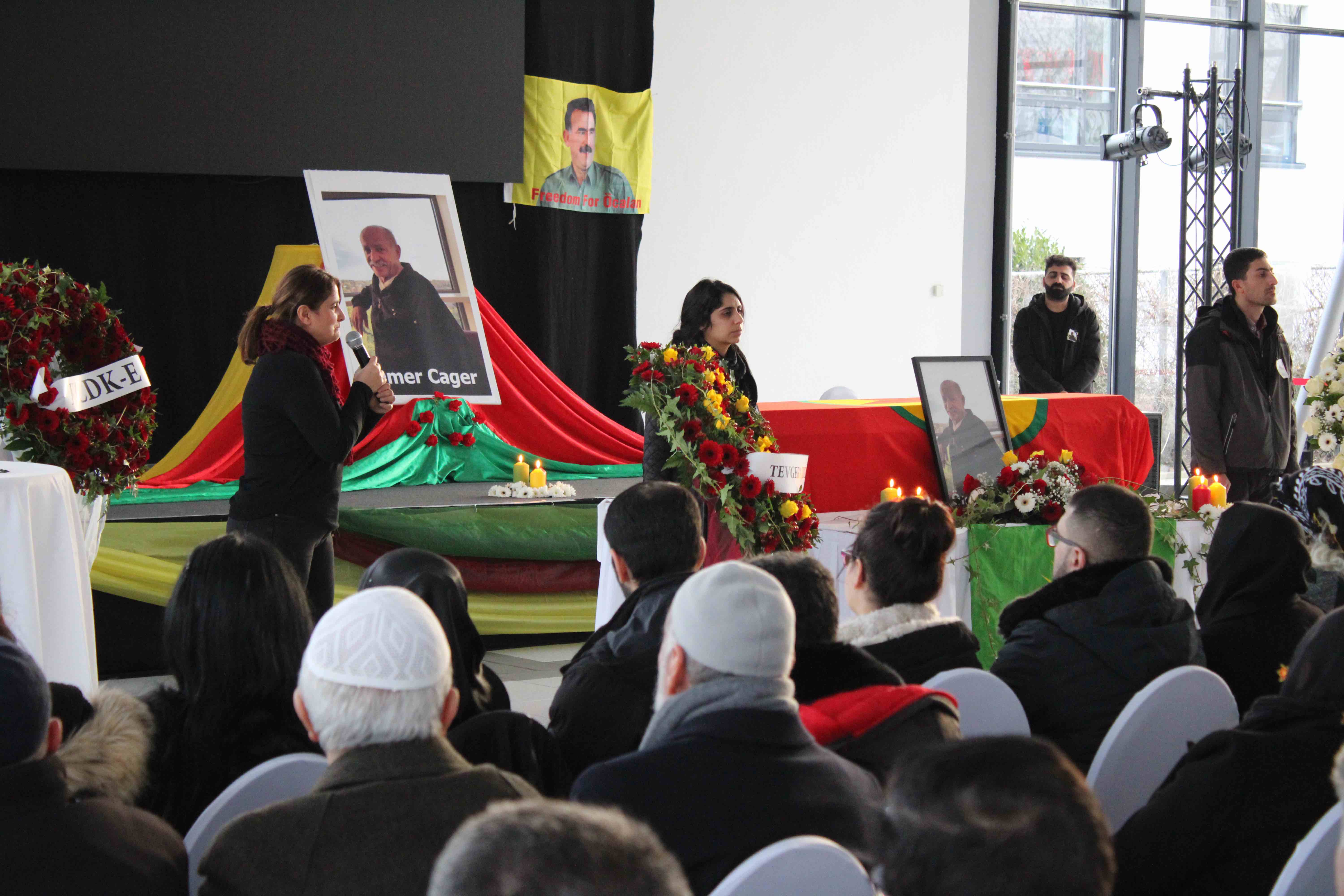 Çağer için 23 Ocak’ta Kassel’e bağlı Lohfelden kasabasında bir tören düzenlendi. PKK bayrağına sarılı tabut “Ez şehidim” parçasıyla salona girerken sık sık “Şehid namirin”, “Bijî Serok Apo” sloganı atıldı.