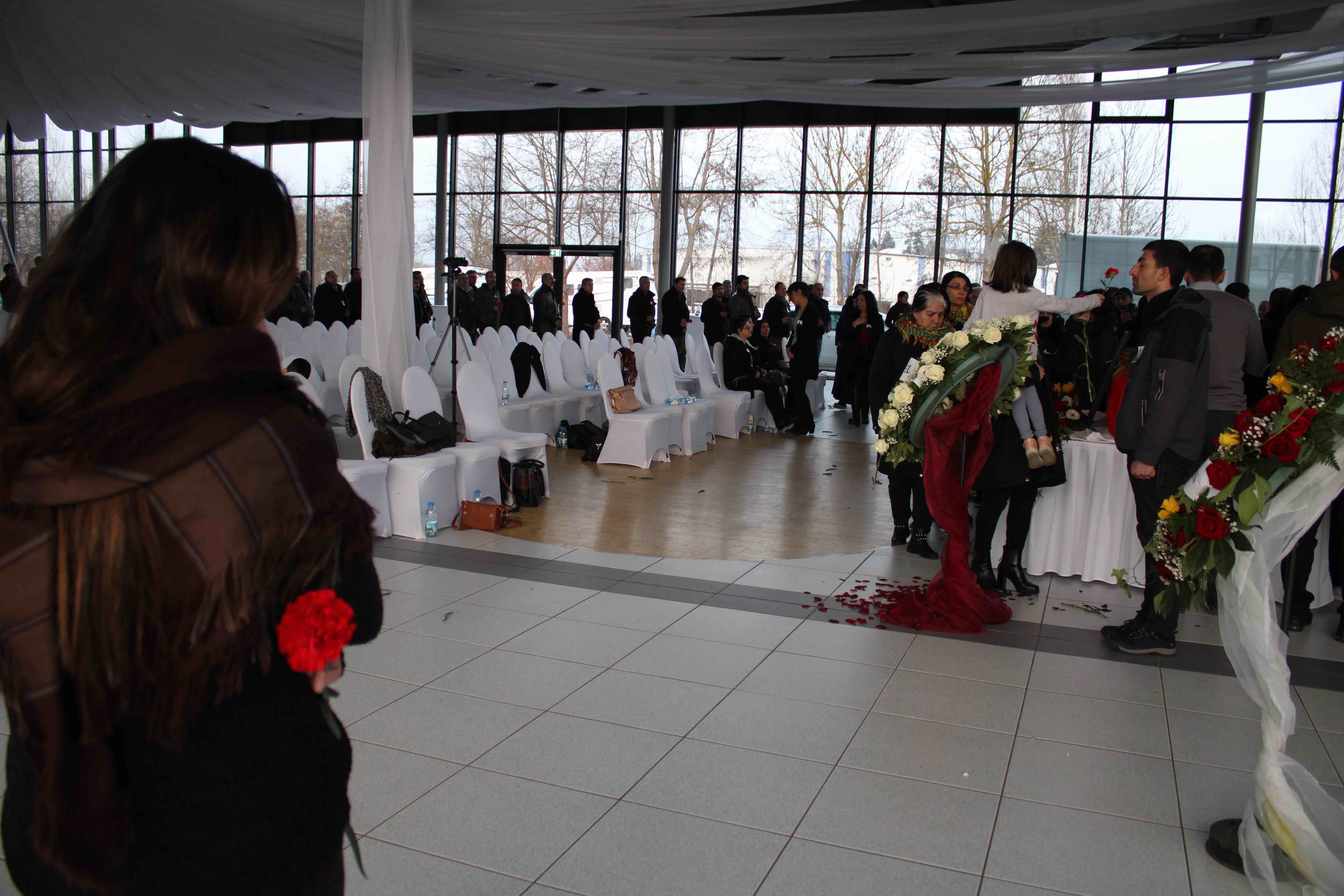 Dini vecibelerin yapılmasından sonra tabutun üzerine kırmızı karanfiller bırakılırken, salonda bulunanlar aileye başsağlığı dilendi.
