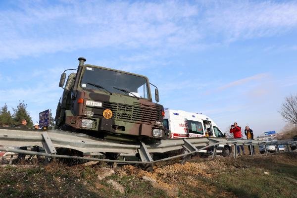 EDİRNE – Edirne’nin Keşan ilçesinde faşist Türk askerlerini taşıyan kamyon iddialara göre şöför’ün direksiyon kontrolünü kaybetmesi sonucu demir bariyere çarptı.