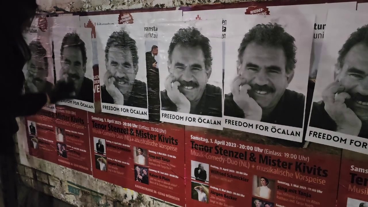 AACHEN – 17 Mart Cuma gününü 18 Mart Cumartesi gününe bağlayan gece Aachen Üniversitesi çevresinde Önder Apo’nun posterleri dağıtıldı. Ayrıca üniversitenin Audimax binasının hemen önüne sprey boyayla bir alıntı yapıldı. Alıntı, tüm öğrenci kitlesine ulaşabilmek için İngilizce olarak da yazıldı.