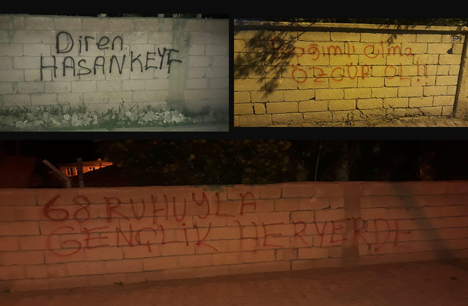 Bu çerçevede Agirînin bir çok mahallesinde, “Uyuşturucuya Son, “Diren Heskîf” ” 68 Gençlik Ruhuyla Gençlik Her yerde” yazılamalarını yazdı.