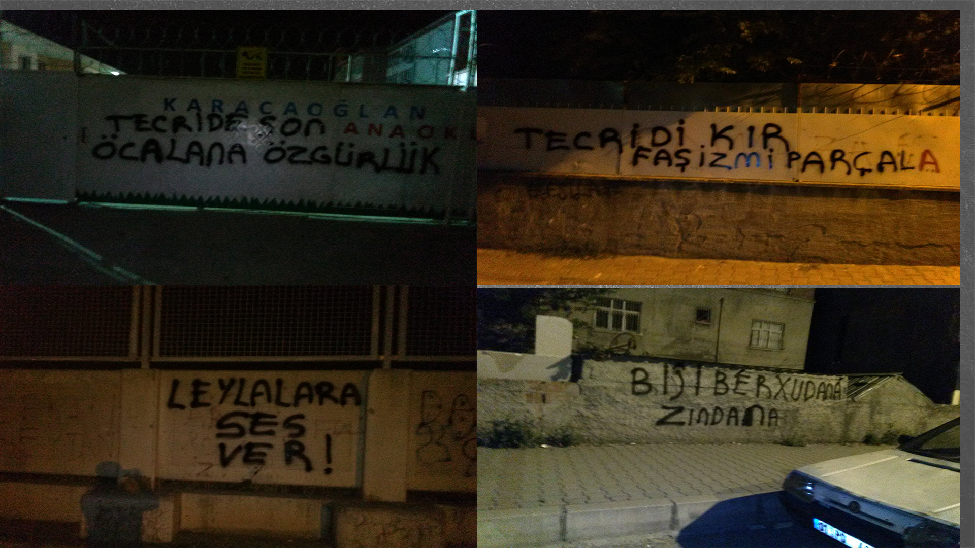 ADANA – Adana gençliği Halklar Önderi Abdullah Öcalan üzerindeki tecridin kaldırılması talebiyle devam eden açlık grevleri ve 30 devrimcinin girmiş olduğu ölüm orucuna dikkat çekmek için yürüyüş ve duvar yazılama eylemlerini yaptı.