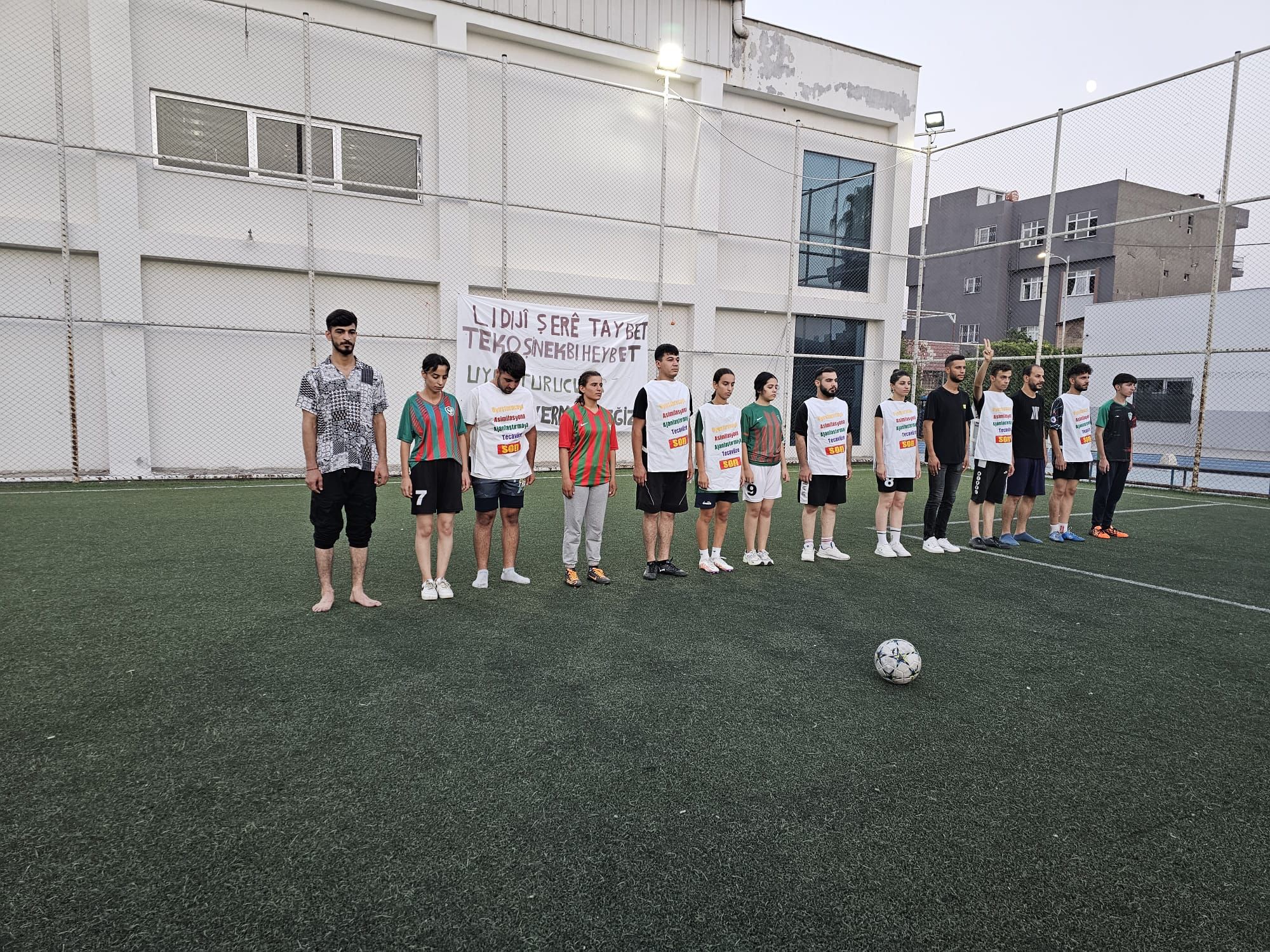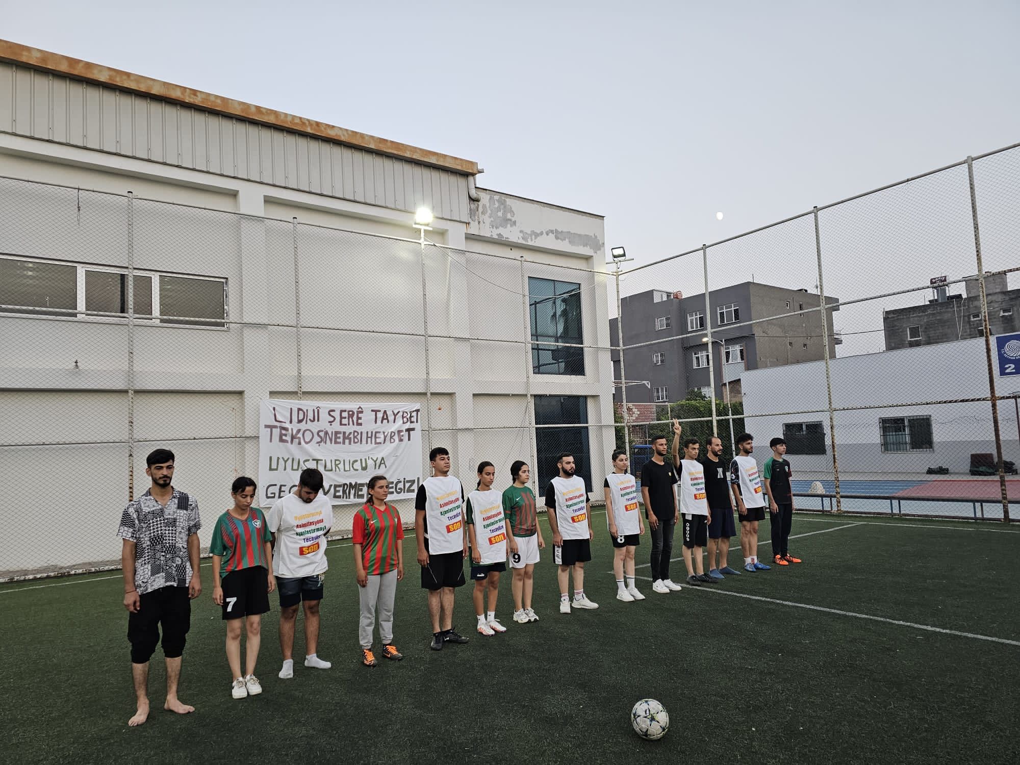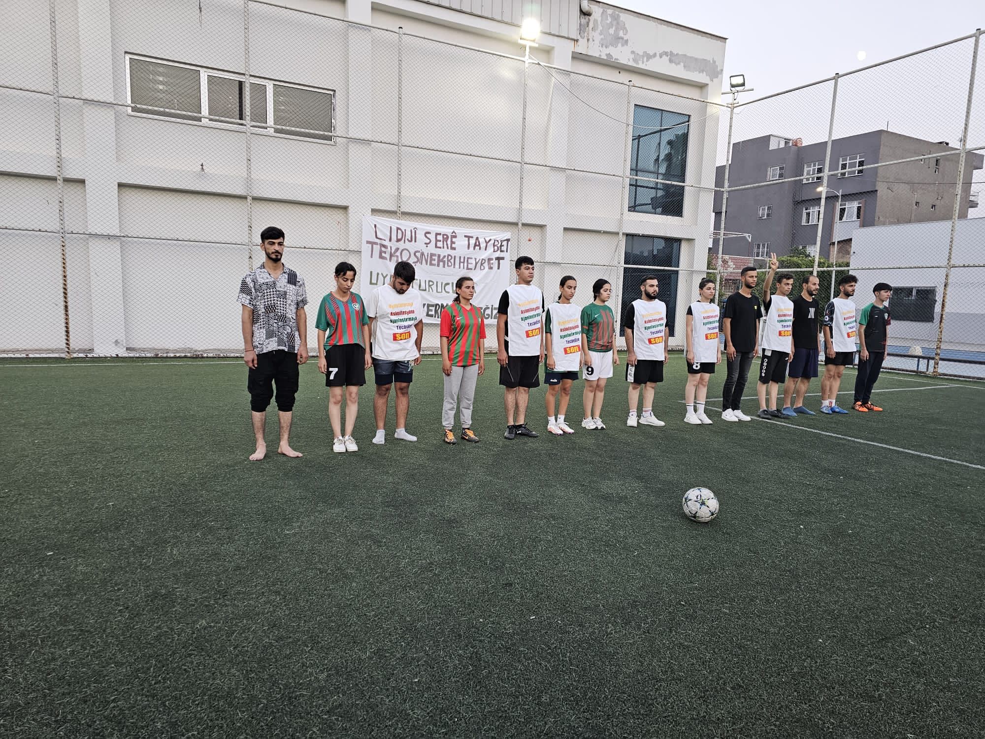 ADANA-Adana Şakirpaşa mahallesinde, Yeşil Sol Partinin başlatmış olduğu ” Li Dijî Şerê Taybet Tekoşînek Bi Heybet” Kampanyası kapsamında Gençlik Meclisi üyeleri tarafından futbol maçı yapıldı.