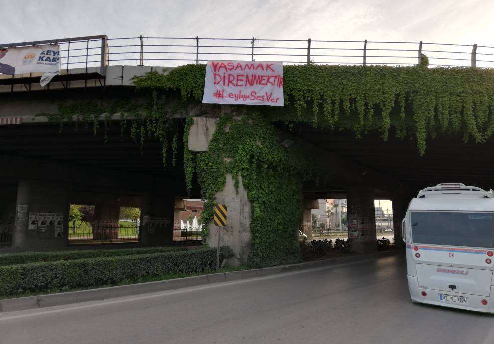 ADANA – Adana’da gençler Halklar Önderi Abdullah Öcalan üzerindeki tecridin kaldırılması talebiyle açlık grevinde bulunan Leyla Güven’e destek amacıyla pankart astı. Kentin en işlek noktalarından biri olan E5 Karayolu üzerinde bulunan köprüye “Yaşamak direnmektir. Leyla’ya ses ver” pankartı asıldı.
