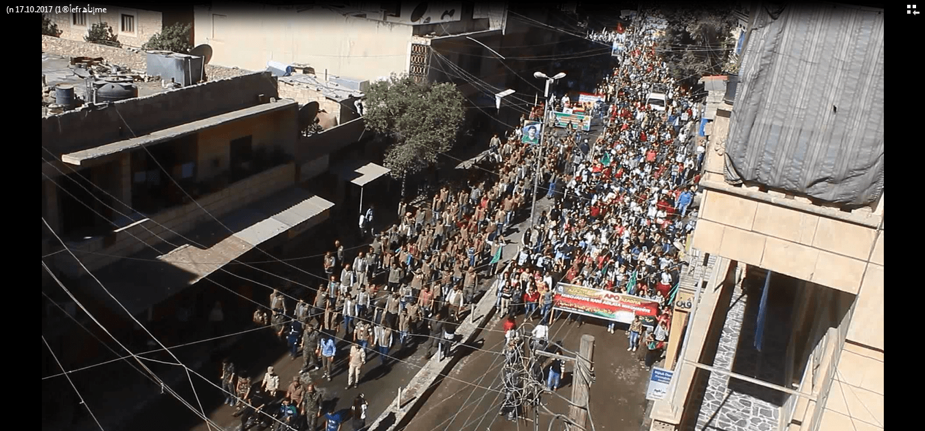 Efrin– Ycr ve Yjc Öncülüğünde Abdulah Öcalan için yürüyüş dözenlendi,Yürüyüş te Binlerce Kadin ve genç katildi.Efrin Halki Abdulah Öcalan’in özerindeki Tecriti Protestu eti ve Abdulah Öcalanin Özgürlüğü istendi.Halk Eşrefiye Asayişine duğru gidildi ve Yürüyüşte Şehitler için bir dakikalik saygı doruşundan sonra yürüyüs Dözenlendi ve Abdulah Öcalan’ın Özgürlüğü Tüm Halkın Özgürlüğüdür ve Öcalan Pankartlarını kaldırıldı yürüyüş Özgürlük meydanında Sloganlarla sona erdi. Yürüyüş Hakında YCR ve YJC Adına Lina Olu konuşma yaptıve konuşmada Biz Efrin Gençleri Önderliğe yapılan tecridi asla kabul etmiyoruz ve Abdulah Öcalan Felsefesini yaşayacağız