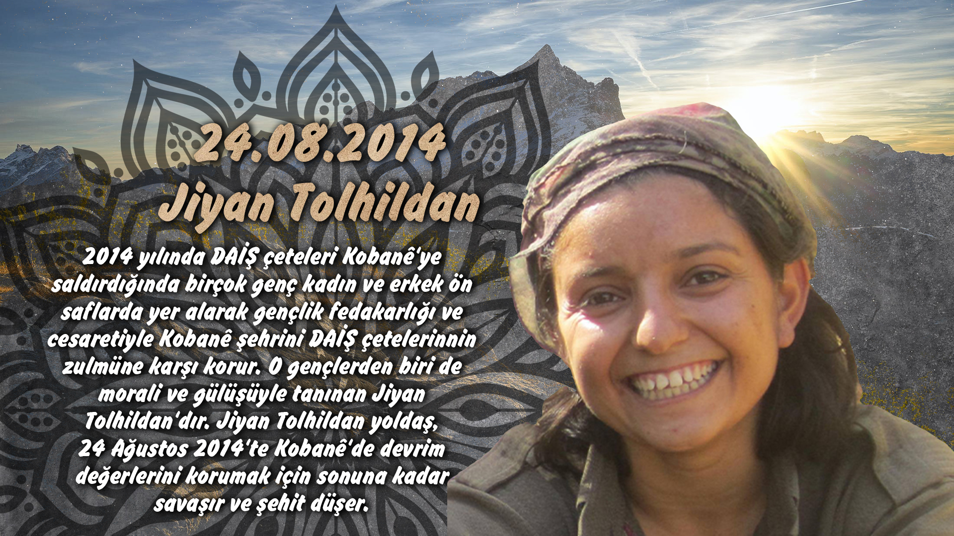 2014 yılında DAİŞ çeteleri Kobanê’ye saldırdığında birçok genç kadın ve erkek ön saflarda yer alarak gençlik fedakarlığı ve cesaretiyle Kobanê şehrini DAİŞ çetelerinnin zulmüne karşı korur. O gençlerden biri de morali ve gülüşüyle tanınan Jiyan Tolhildan’dır. Jiyan Tolhildan yoldaş, 24 Ağustos 2014’te Kobanê’de devrim değerlerini korumak için sonuna kadar savaşır ve şehit düşer.