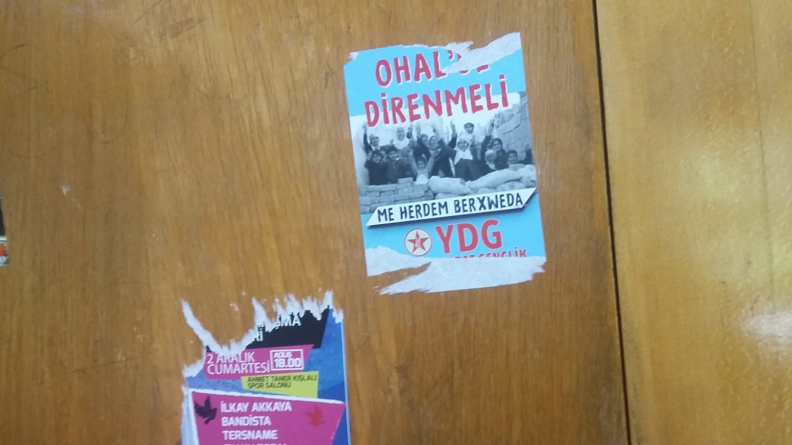 HABER MERKEZİ – Yeni Demokrat Gençlik’in geçtiğimiz dönem yürüttüğü OHAL kampanyasına ait stickerları “Sosyal Bilimler Fakültesi yoğun olmak üzere çeşitli yerlerine asılan broşürlerle PKK’nin gençlik yapılanması YDG-H’ın propaganda broşürleri bulunuyor” şeklinde hedef gösterdi. Yeni Akit’e göre, 3 yıl önce fes edilen YDG-H hala ODTÜ’de çalışma yürütüyor.