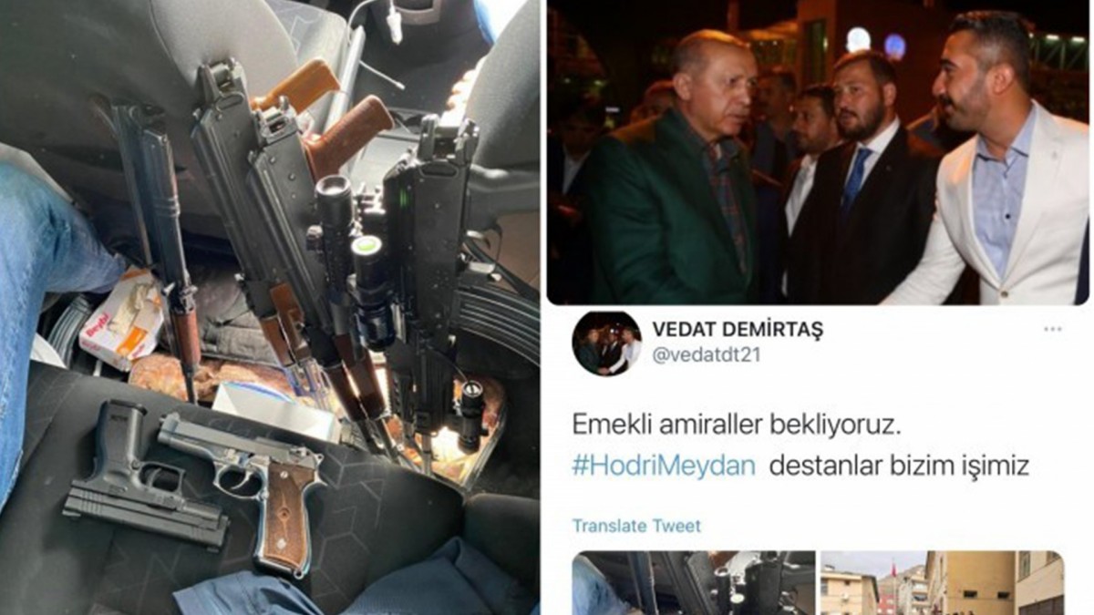 AKP’li Vedat Demirtaş, Twitter hesabından paylaştığı fotoğrafta, araç içerisinde 3 adet kalaşnikof, iki adet tabancı ve bir adet taarruz tüfeği ve çok sayıda taarruz dürbünleri görülüyor. Söz konusu paylaşımda Vedat Demirtaş, “Emekli amiraller bekliyoruz. Hodri meydan. Destanlar bizim işimiz” diye yazdı.
