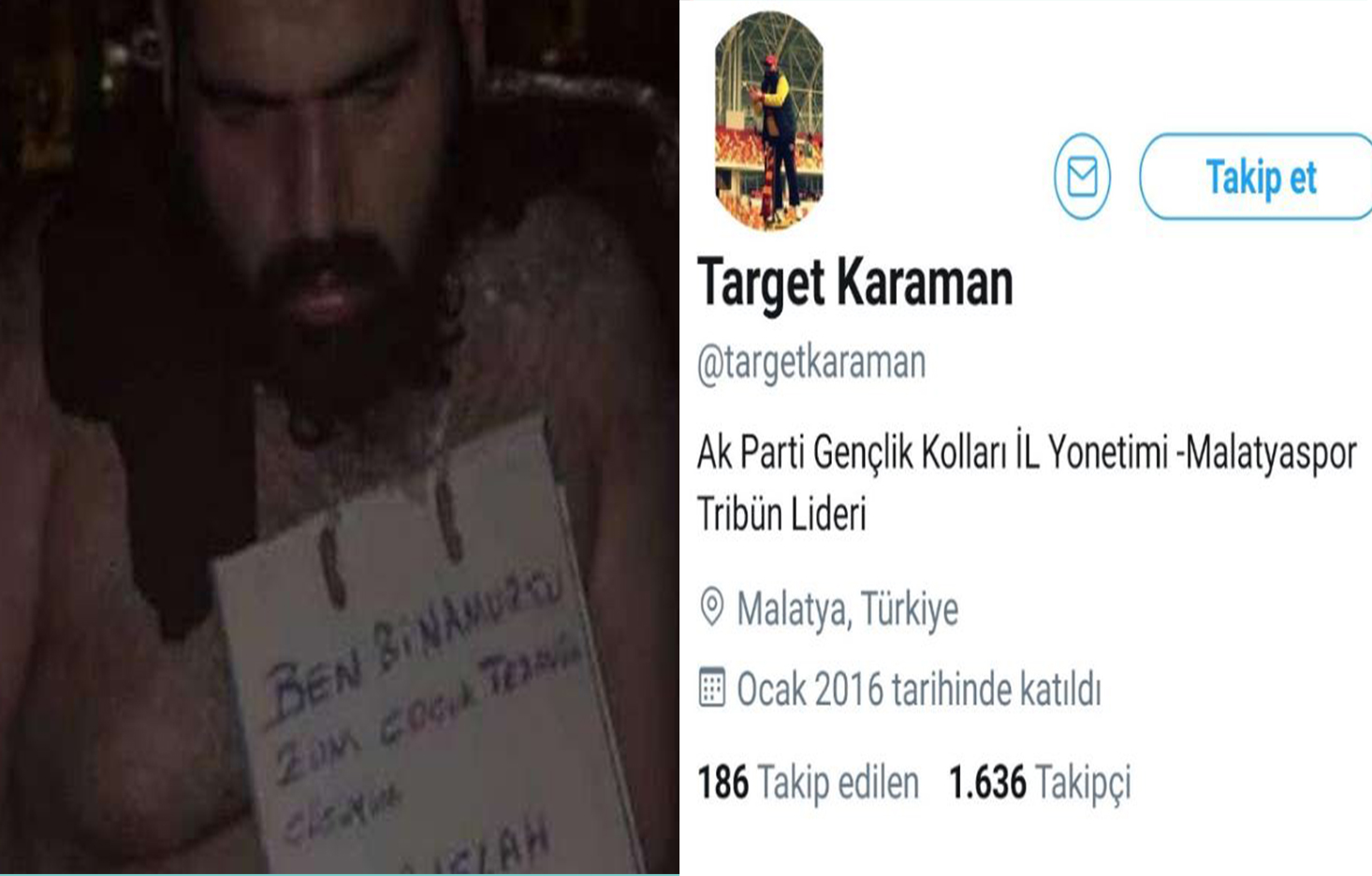 HABER MERKEZİ – Akp Gençlik Kolları il yönetiminde görevli ve Yeni Malatyaspor’un taraftar grubu olan Derebeyleri Derneği’nin üyelerinden tacizci Target Karaman, 2 çocuğa cinsel istismarda bulunurken yurttaşlar tarafından fark edildiği öğrenildi.