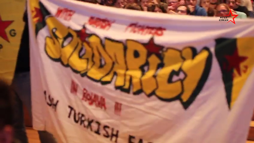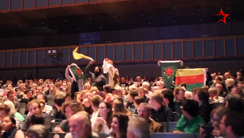 Panele katılan bazı dinleyiciler gençlere alkışla destek verirken, eylemini sürdüren gençler yaptıkları açıklamada, Türk devletinin kullandığı tankların Alman tankı olduğunu ve bunlarla Kürtleri öldürdüğünü ifade eden gençler bir süre slogan attıktan sonra yanlarında getirdikleri bildirileri panelcilere dağıttı.