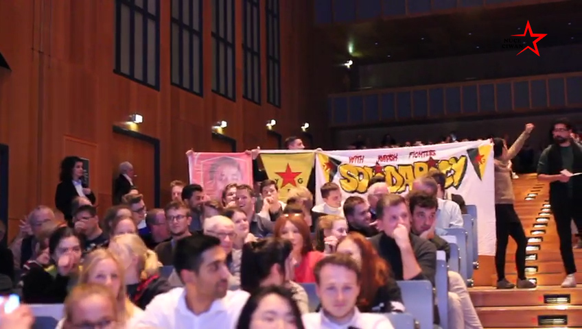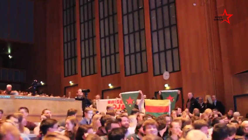 KÖLN – Türk devletinin Rojava’yı işgal saldırılarına karşı Young Struggle, Zora, Tevgera Ciwanên Şoreşger ve Defend Rojava aktivisti gençler Almanya’nın Köln şehrinde bir eylem düzenledi. Köln’de bir grup Kürt ve Alman genci Köln Üniversitesi’nde düzenlenen ‘Adenauer Culture’ paneline konuk konuşmacı olarak katılan Alman Federal Meclisi başkanı Wolfgang Schäuble’yi protesto etti. Schäuble konuşmasına bir süre ara vermek zorunda kaldı.
