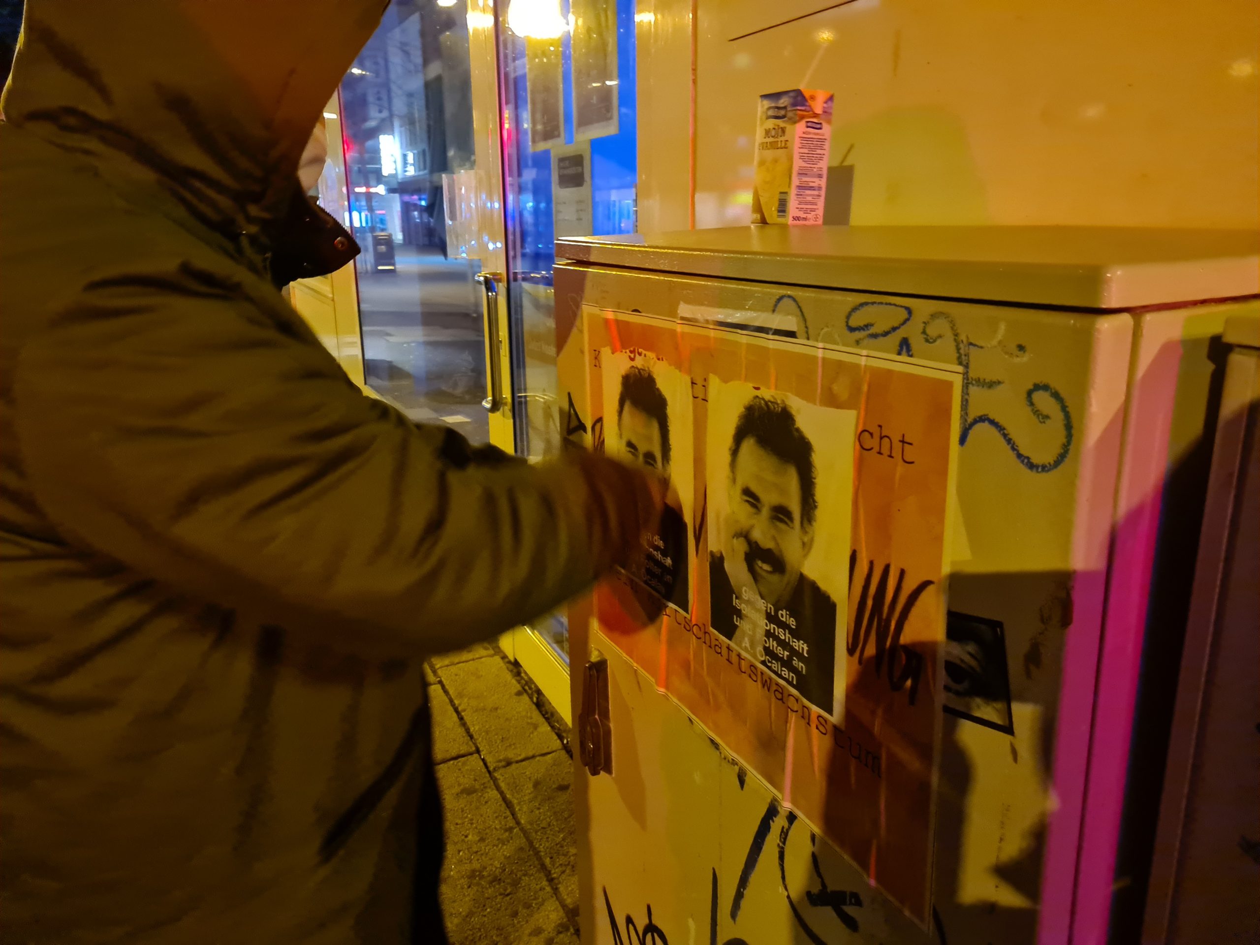 Gençler, NRW eyaletinin başkenti olan Düsseldorf’un 2 ayrı noktasına Almanca, “Öcalan’a Özgürlük” ve “Zamanı Geldi – Öcalan’a Özgürlük” yazılı pankartlarını asarken, Osnabrück’te ise birçok yere Önder Öcalan’a uygulanan tecride dikkat çekmek için üzerinde Öcalan’ın resminin olduğu afişler yapıştırdı.
