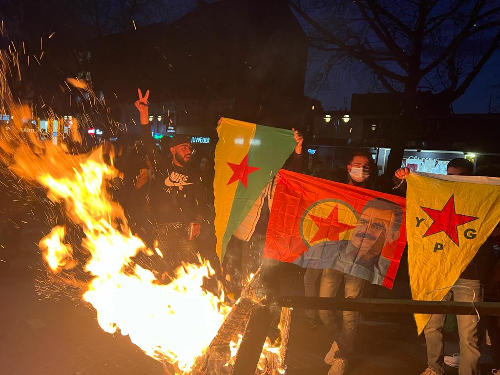 Kutlama da sarı, kırmızı ve yeşil meşaleler yakıldı. Gençler “Bijî Serok APO” sloganını atarak eylemlerini sonlandırdılar.