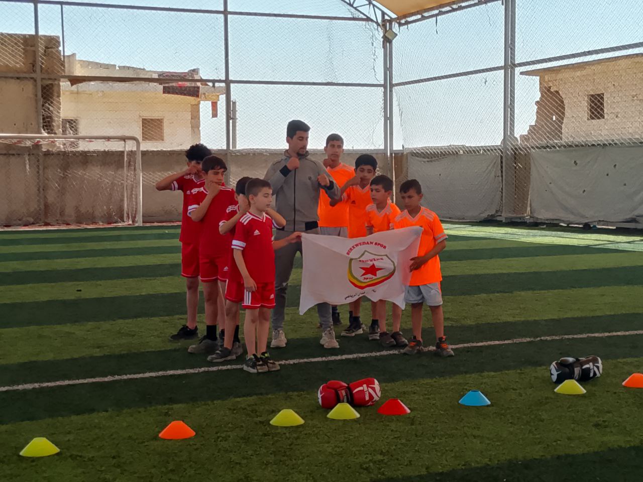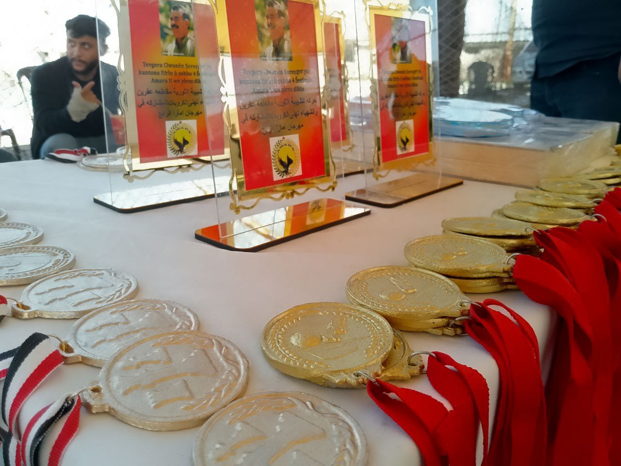 Saygı duruşuyla başlayan festivalin ardından Halep Spor Federasyonu Müdürü Megdolîn İbo da konuşma yaparak Çnder APO’nun doğum gününü kutladı.