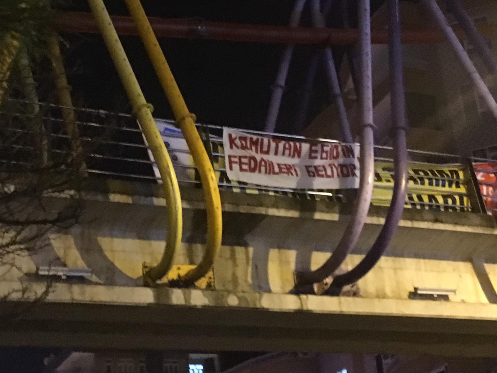 Amed gençliği Koşuyolun’da bulunan köprüye”Komutan Egîdin fedaileri geliyor” yazılı bir pankart astı.